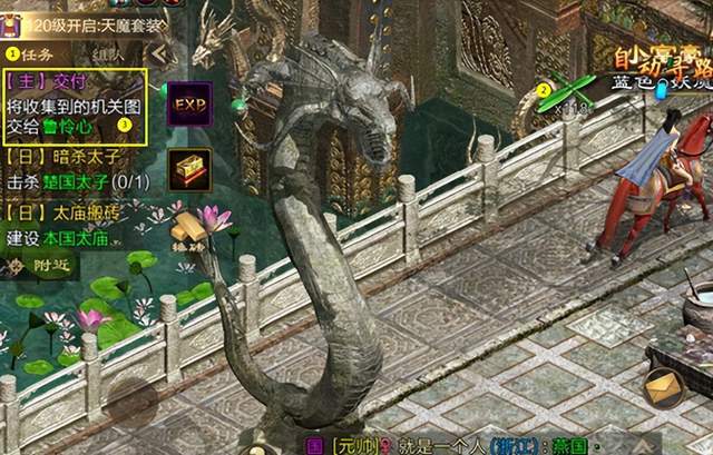 3、点击③的区域后,角色名字的左侧,上图②的位置,会出现一个“竹蜻蜓”图标,点击它就能消耗竹蜻蜓直接飞到任务目标地点。