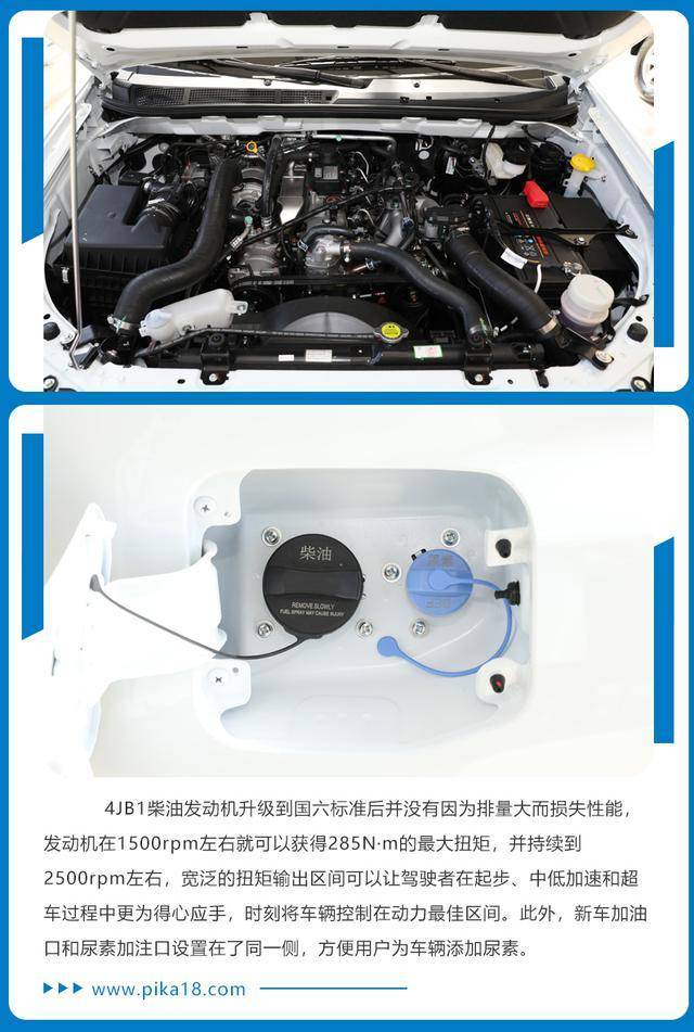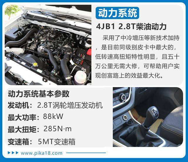 当然,经典瑞迈作为一款民生创富皮卡,最值得关注的还是其装载运输能力。全新经典瑞迈拥有2.4T汽油和2.8T柴油两种动力可供选择,汽油版搭载的是三菱4K22 2.4T发动机,柴油版搭载的则是有一代机皇之称的五十铃4JB1 2.8T柴油发动机。