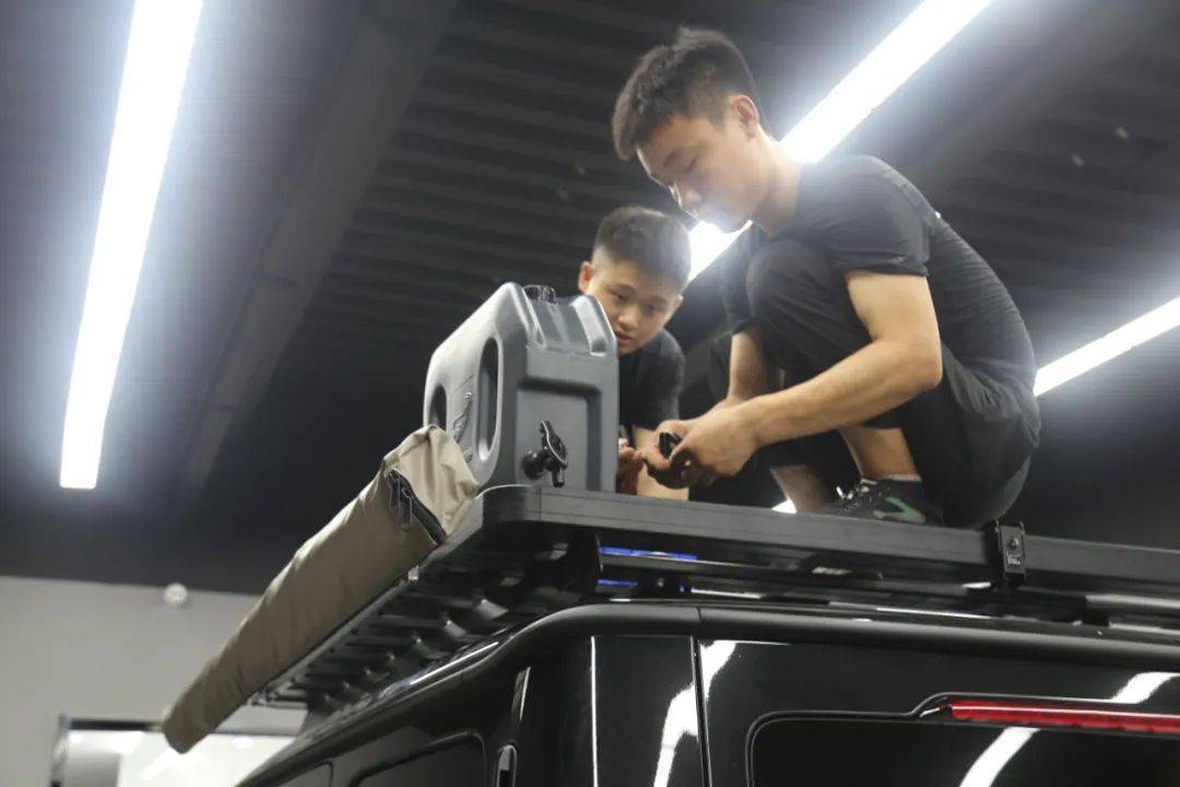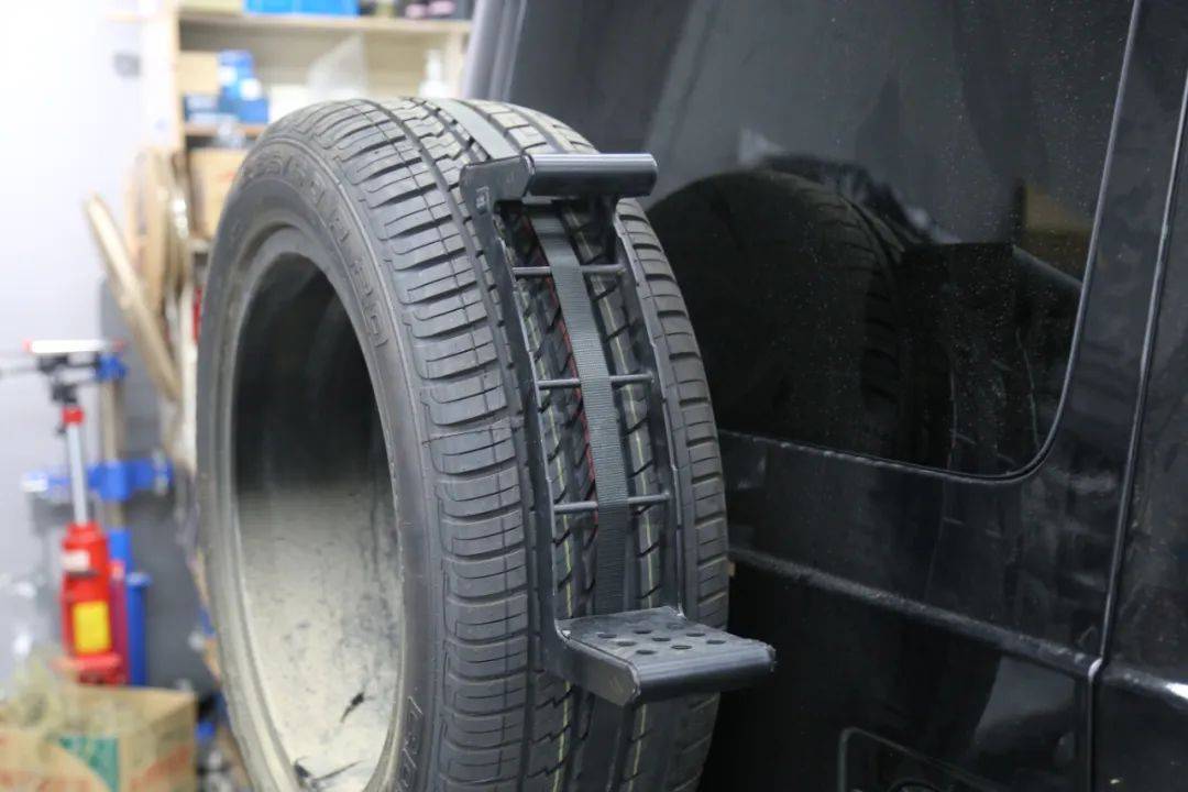 装备齐全,才能说走就走!这台大G升级的车顶行李框和侧帐,只要两分多钟就能搭建起一个临时营地,你心动了吗?车顶装上了装备该怎么上去呢?别急!爬梯也安排上!大G的爬梯位置是安装在后备胎位置,加上爬梯原来的备胎罩就装不上了,不过没关系,车主想到了这一层然后专门定制了一个备胎罩O(∩_∩)O哈哈~