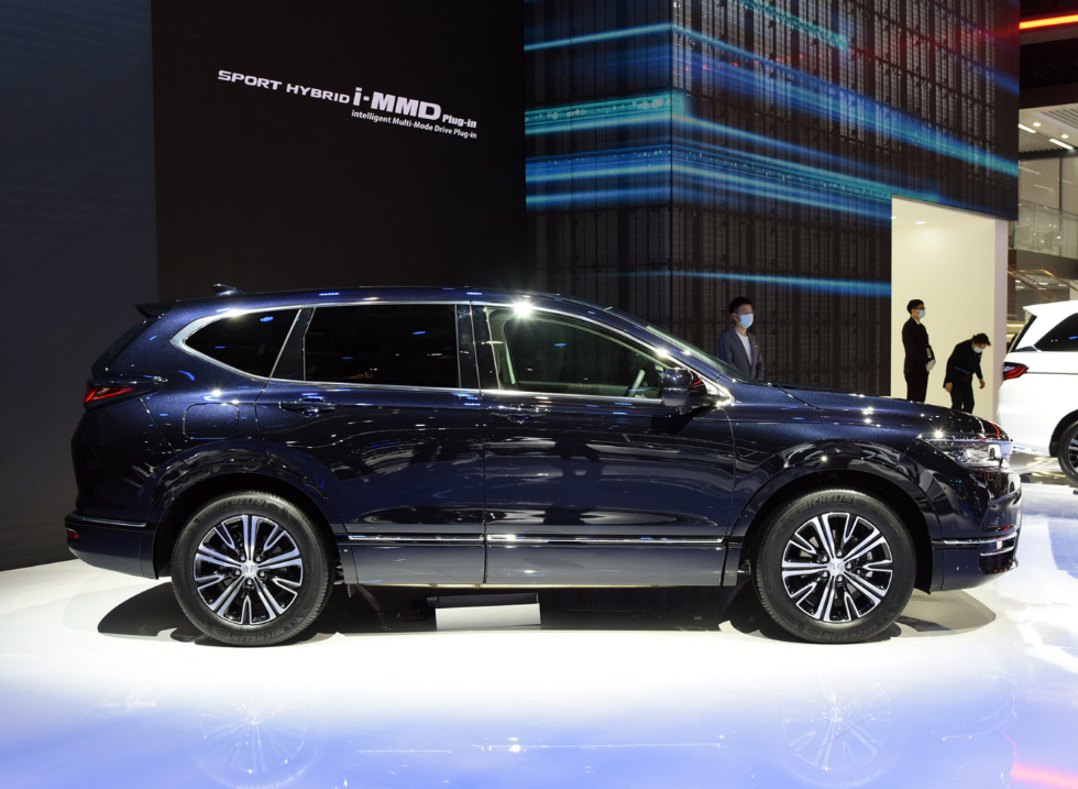 作为皓影的PHEV插电混动版本,皓影锐·混动e+在造型上与混动版区别不大,不过从造型细节上还是可以看出不同,比如镀铬格栅造型的细微改变,雾灯区域及车身两侧加入的镀铬装饰,以及尾部右侧加入的“e:PHEV”标识等等,彰显着其新能源车的身份。
