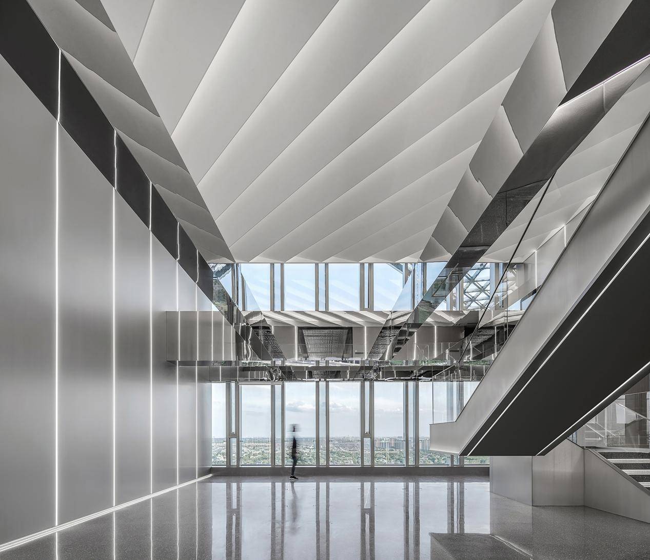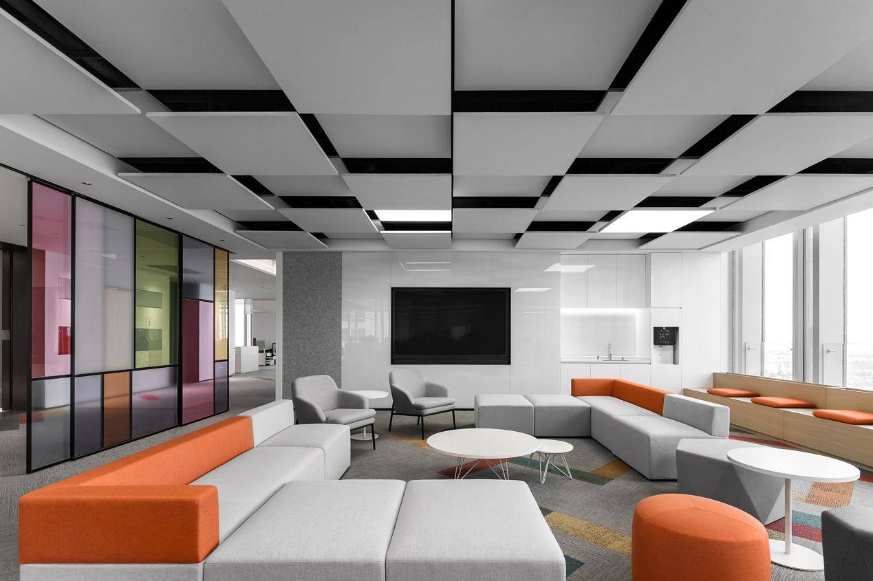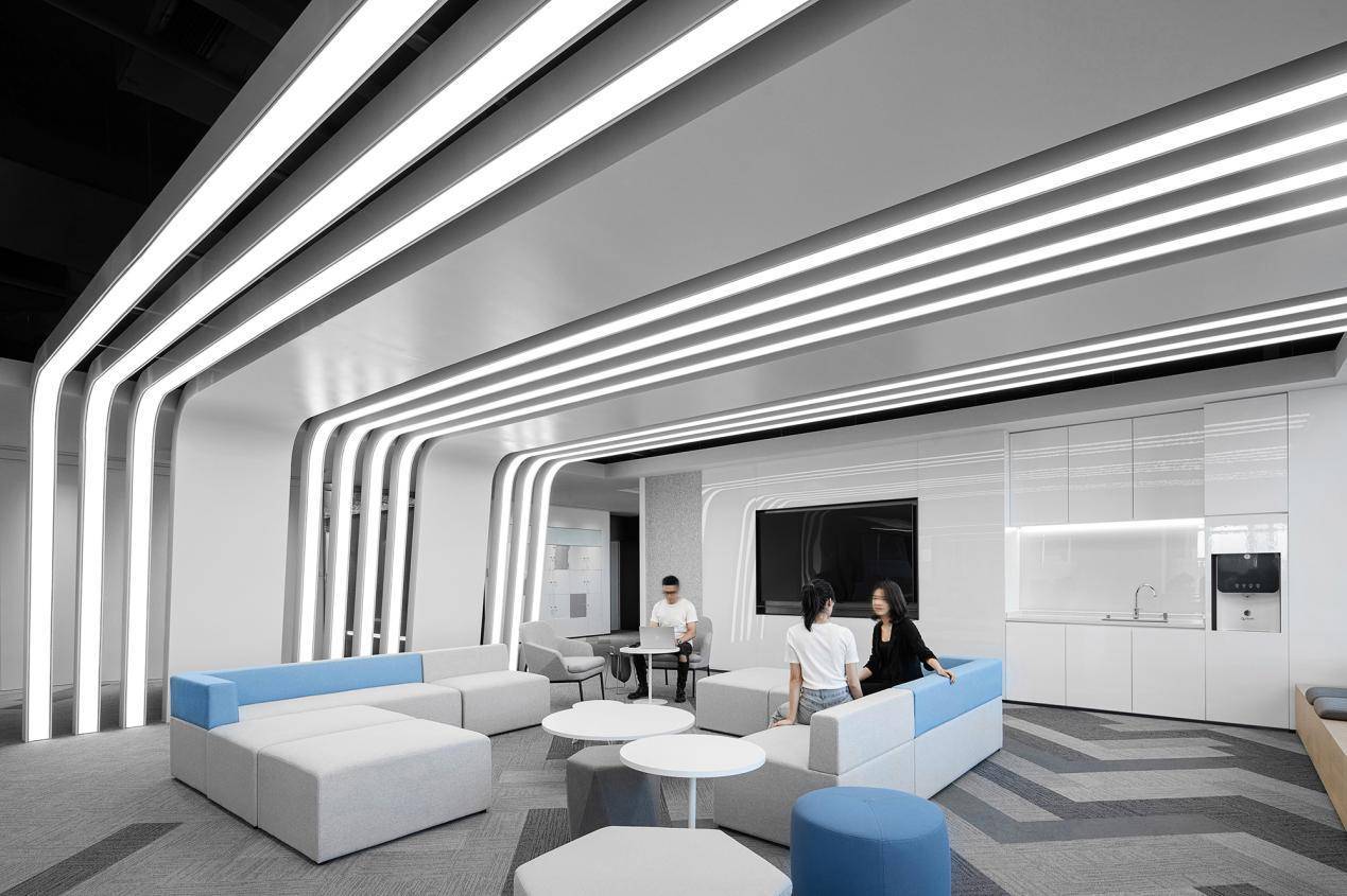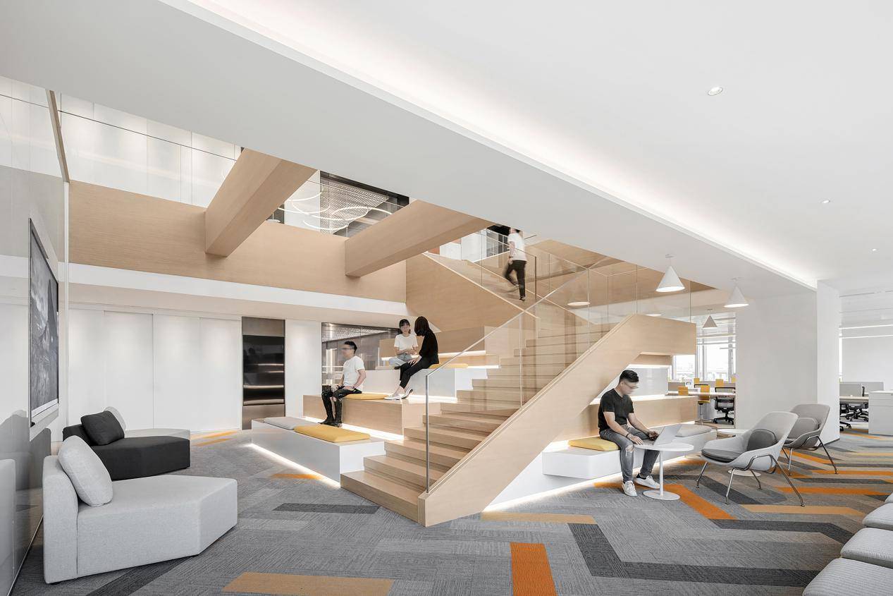 As for horizontal design, in order to prevent traffic overlaps and crosses among departments, designers designed key junctions for each floor, so as to avoid traffic clutter, space debris and even waste of space, and at the same time to provide this huge building with core social gathering points, which becomes the biggest design highlight of this office project.