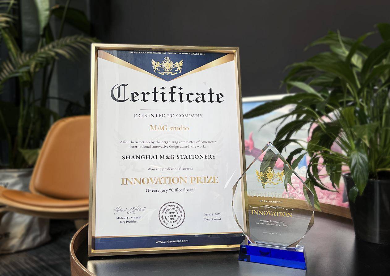 ▲ MAG荣获美国AIIDA国际创新设计大奖奖杯证书