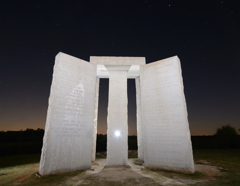 据悉,“佐治亚巨石阵”于1980年建造,由6块巨石组成,其上刻有英语、西班牙语、阿拉伯语、斯瓦希里语、印度语、希伯来语、繁体中文和俄语这8种语言写成的10段话,主体结构西侧还有一个小石碑,上面记载着这个石碑的一些建筑参数,同时还刻有这样一句话:“让这些成为理性时代的指引石吧。”借助网络传播,该纪念碑成为著名旅游景点,每年吸引数千人参观。