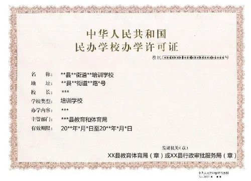 培训机构应在培训场所显著位置悬挂政府部门颁发的《民办学校办学许可证》,同时应取得与培训机构名称一致的《企业法人营业执照》或者《民办非企业单位法人登记证》。校外培训机构的民办学校办学许可期限应在有效期内,颁证机关应为办学点所在县市区的教育体育局或行政审批服务局,办学地址应与实际办学地址一致,开设课程应与许可内容一致。参加培训机构课程前,家长一定要查验任课教师持有的行政机关签发的教师资格证书,按照规定,教师资格证书应在培训场所显著位置公示。