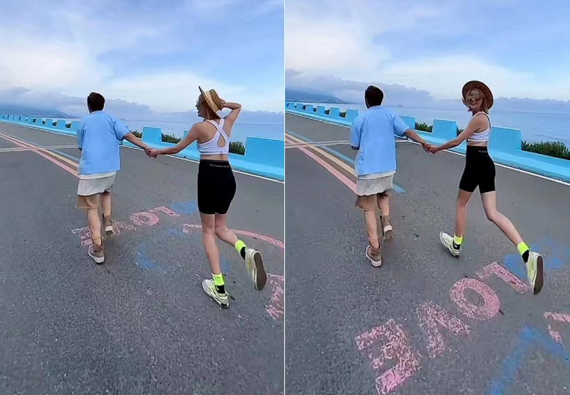 玩完滑板之后,这夫妻二人还在海边拍起了情侣大片。陈浩民和蒋丽莎手牵手在公路上跑着,蒋丽莎时不时地回头。这画面看起来,二人颇像热恋中的情侣。
