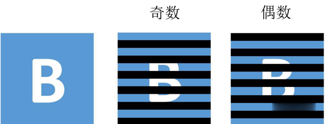 也就是将整个画面平均分成一定数量的横行,两个场分别显示画面的奇数行和偶数行。
