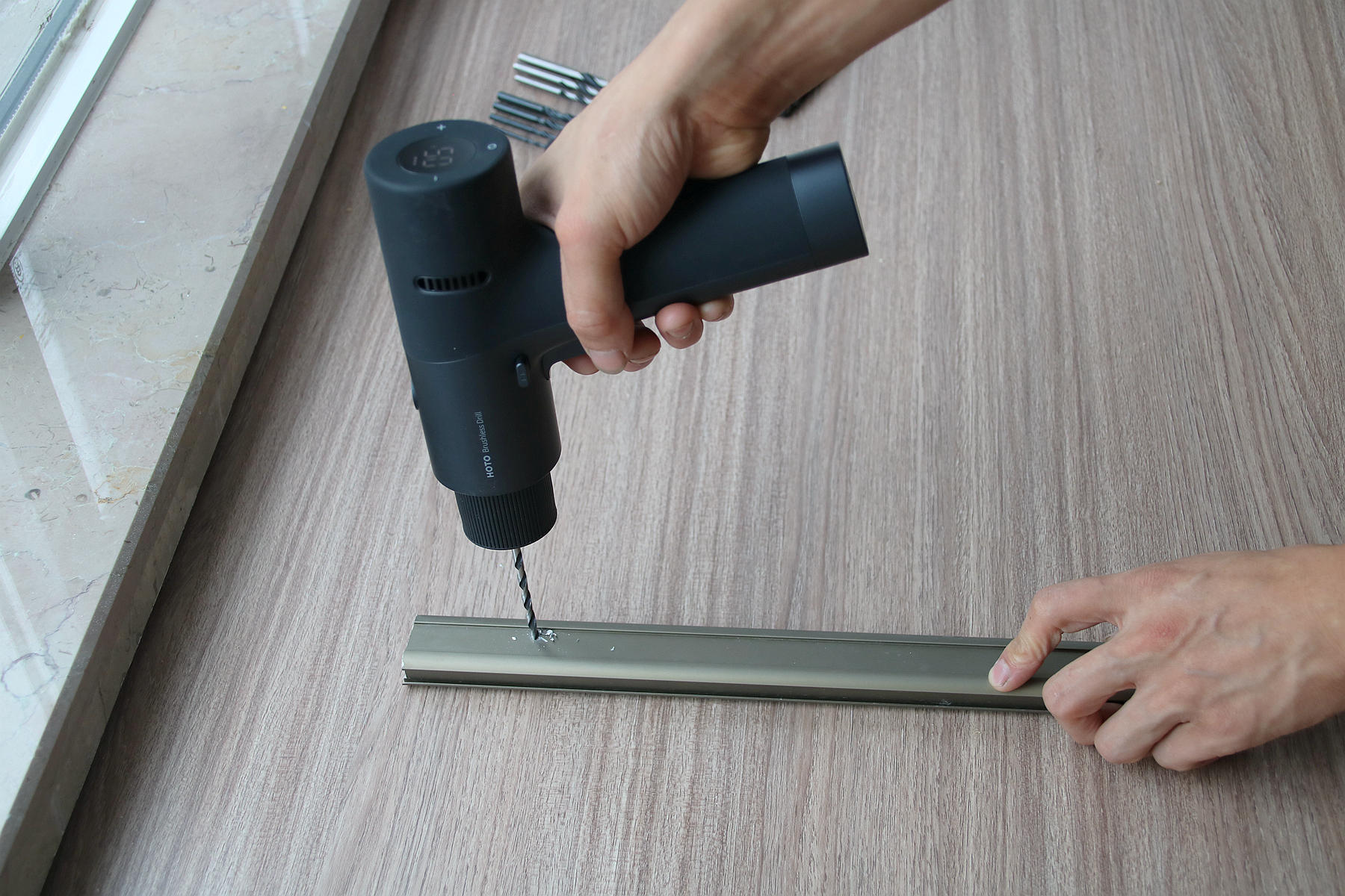 特意找了一块铝合金来测试一下小猴12V无刷电钻的效果,我将两种钻头都试了一下,都能将铝合金钻穿,这个就有点无解了,官方说那种白色的钻头是木工钻,我拿来钻铝合金一样能轻松钻穿,可以说小猴12V无刷电钻的动力还是很强劲的。
