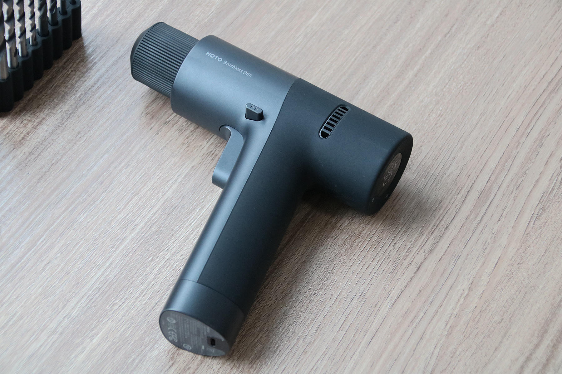 从外观上看,小猴12V无刷电钻要比市面上那些电钻产品漂亮很多,因为你从它机身上找不到一口螺丝,并且机身上用了一种金属烤漆+软胶注塑包覆,给人的感觉就是比较有质感,加上它采用了人体工学设计,握在手上也有着较好舒适感,同时它也具有一定的防滑性。
