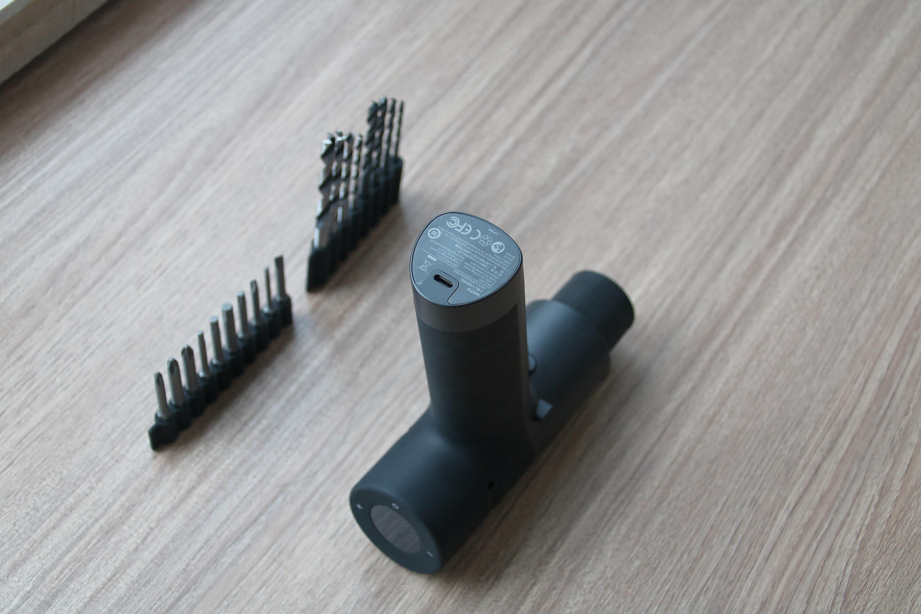 批头则配备了10枚,其类型是S2钢长批头,基本上家用电器或者家具上的螺丝类型它都能适配,可以看到这种批头是专为小猴12V无刷电钻设计的,因为之前小猴的那些手动螺丝刀和工具箱里面的附带的批头虽然种类差不多,但是它们的长度要短一些。