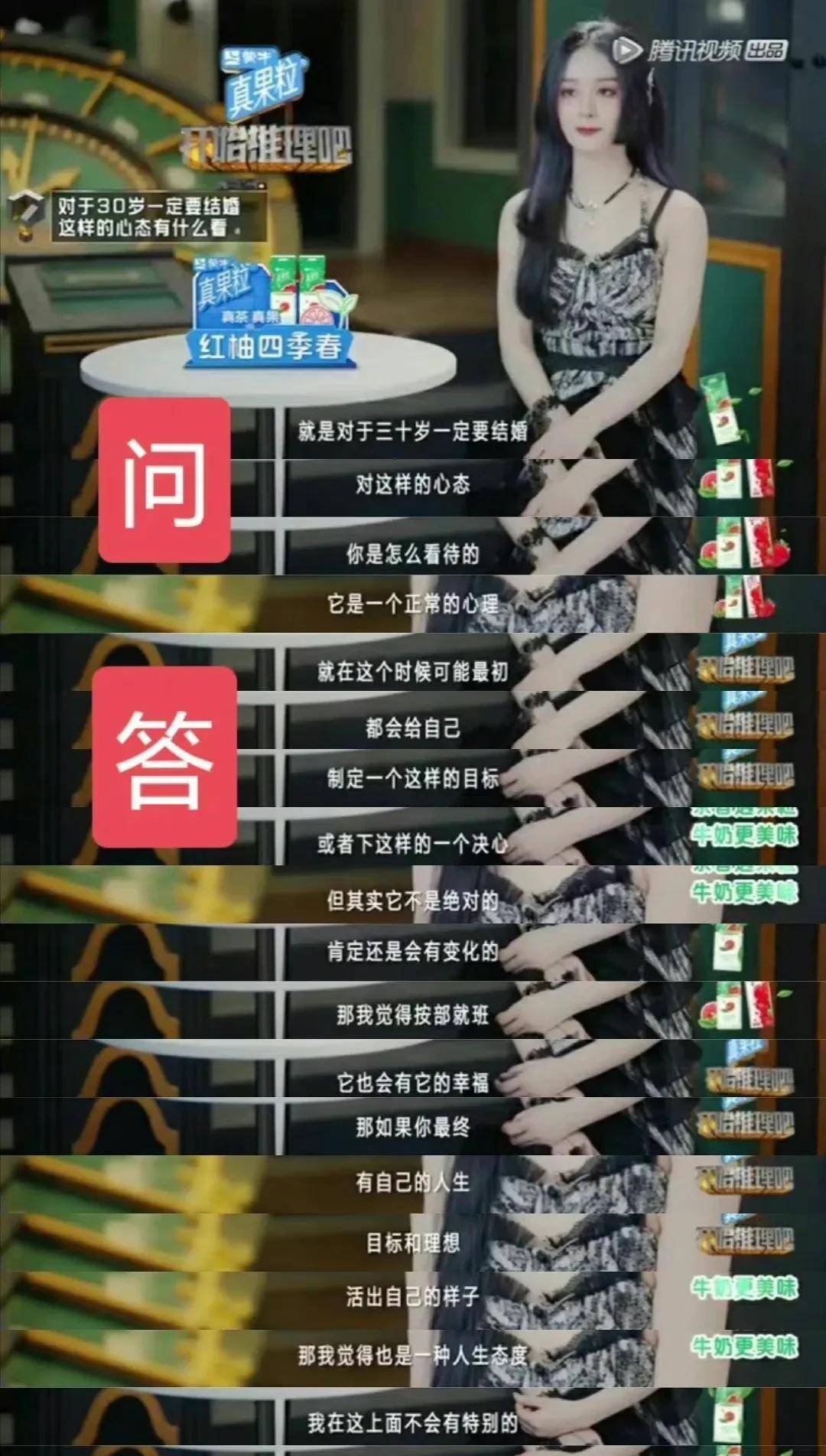 在离婚一年后,赵丽颖首谈婚姻观。在综艺《开始推理吧》的访谈环节,赵丽颖被问到对30岁一定要结婚怎么看?赵丽颖的回答受到很多网友的认同。赵丽颖表示,30岁一定要结婚其实是人的一种正常的心理,不过它不是绝对的。因为人一开始总会给自己定一个类似的目标,而人生总是充满了变化,所以,30岁一定要结婚这个目标也不是一成不变的。