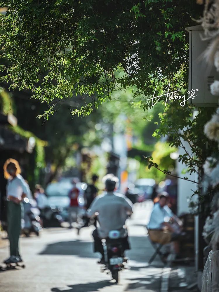 花花草草也是我在“扫街”中经常会拍摄的题材,伸出墙头的那一抹绿色总会让人心情格外舒畅,再或者,可以用茂盛的枝叶“搭建”一个框架式构图,为整个画面增添一份可读性。