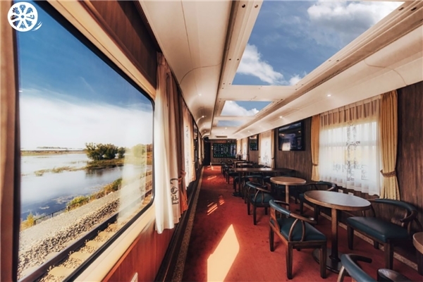 最后一天,穿梭在呼伦贝尔号超大景观豪华包间及雅致的多功能车厢内,任凭双眸洗刷窗外美景,尽享车上丰富多彩的娱乐体验。中俄蒙三国精致美食相伴移动的美景,让列车旅途回味无穷。