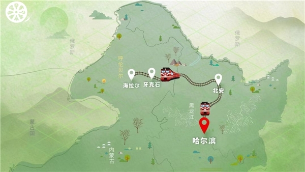先来介绍呼伦贝尔号“草原森林之旅”的站点文化、目的地特色、硬核景点、特色专属等体验。线路从哈尔滨始发,途径北安、牙克石、呼伦贝尔到达海拉尔。沿途一路纵览草原、森林、湿地、火山、湖泊等北国自然奇貌等精彩之处。