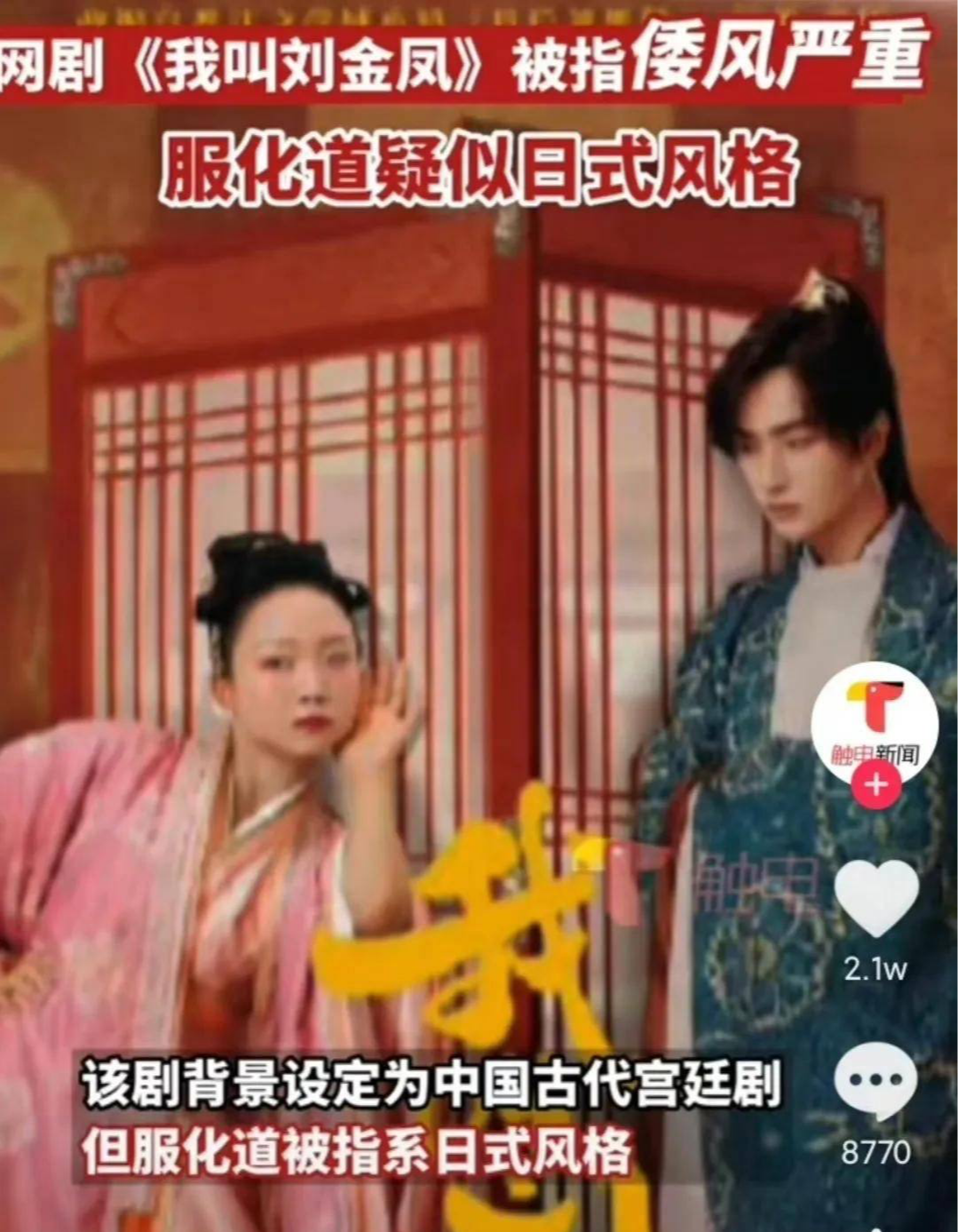然而,《我叫刘金凤》这部剧却被一开播便引发吐槽,剧中的服装与倭国的服装非常相似,令人极度的反感。