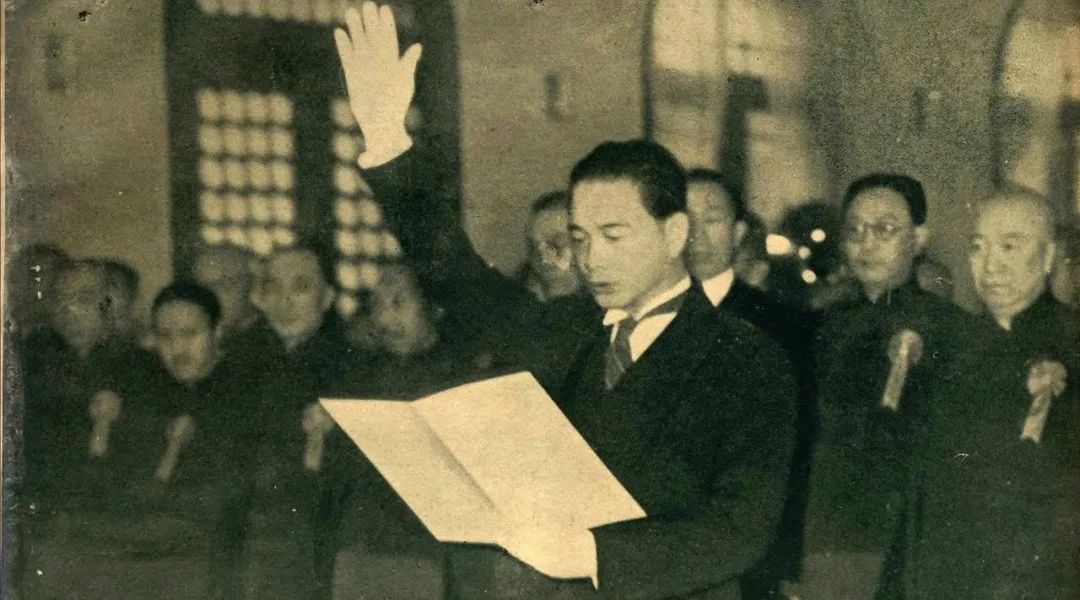 (正在宣誓的汪精卫)