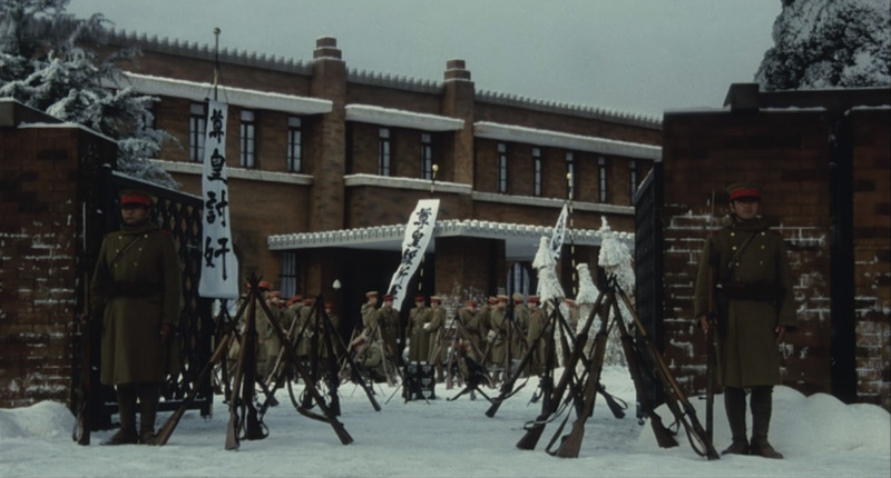 最后,青年军官决定放弃行动,让部队返回营地,接受宪兵的逮捕。他们乖乖投降,是为了到法庭上继续抗争,通过审判宣扬他们的理念。然而,在天皇授意下,军事法庭进行了从严从速的秘密审判。青年军官想通过审判进行宣传的计划,也破产了。