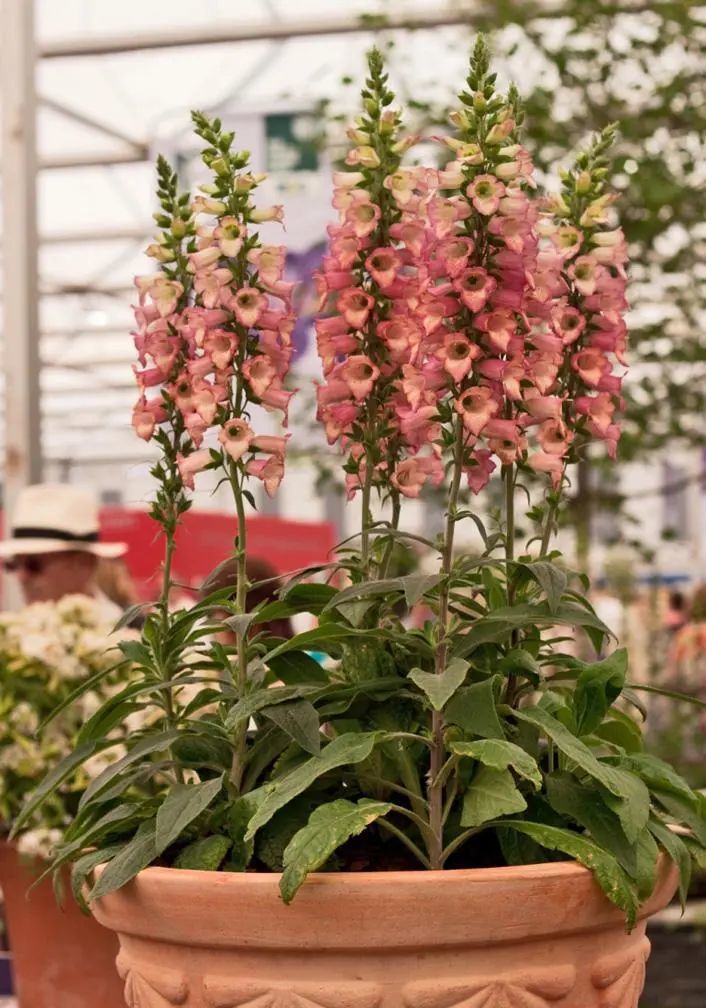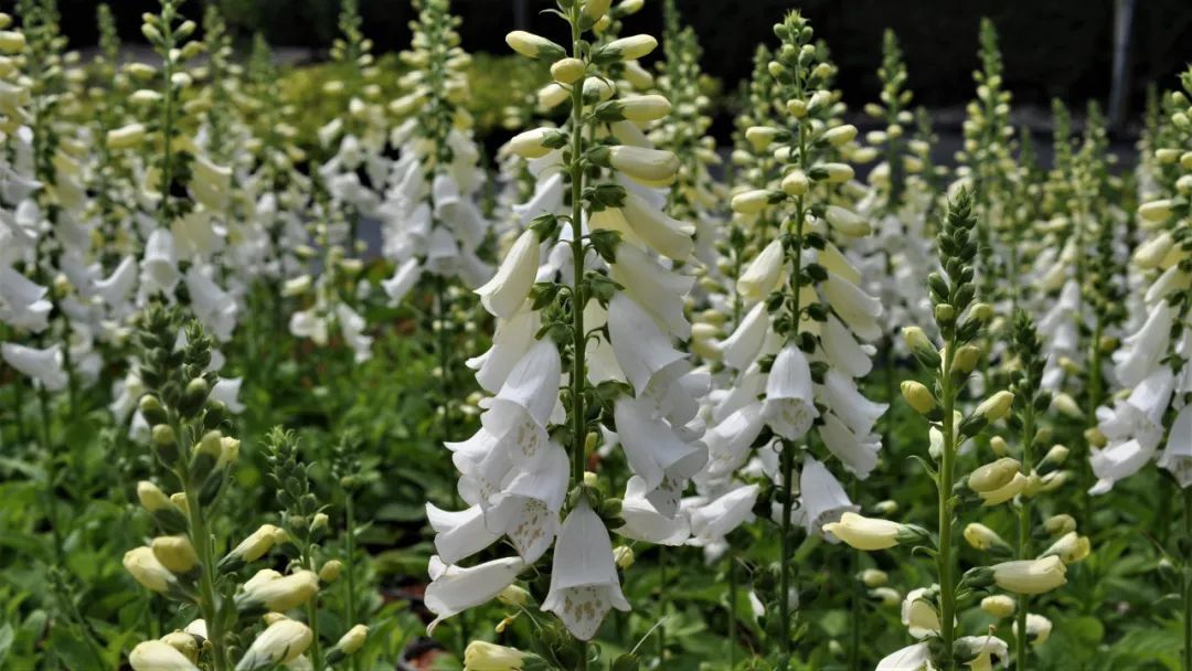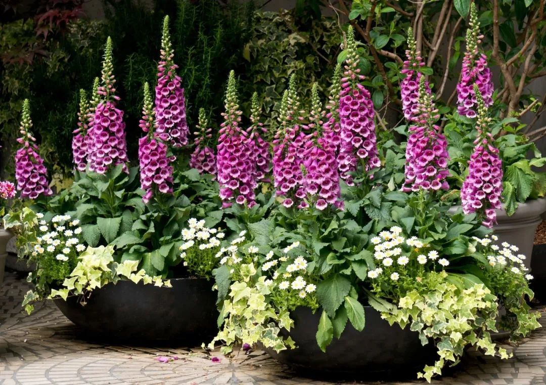 毛地黄的植株长得特别整齐,长得很高了也不会倒伏,最好是不同品种,不同花色种一起,甚至可以种在花槽或大盆里,养成组合盆栽,也会有较好的效果。