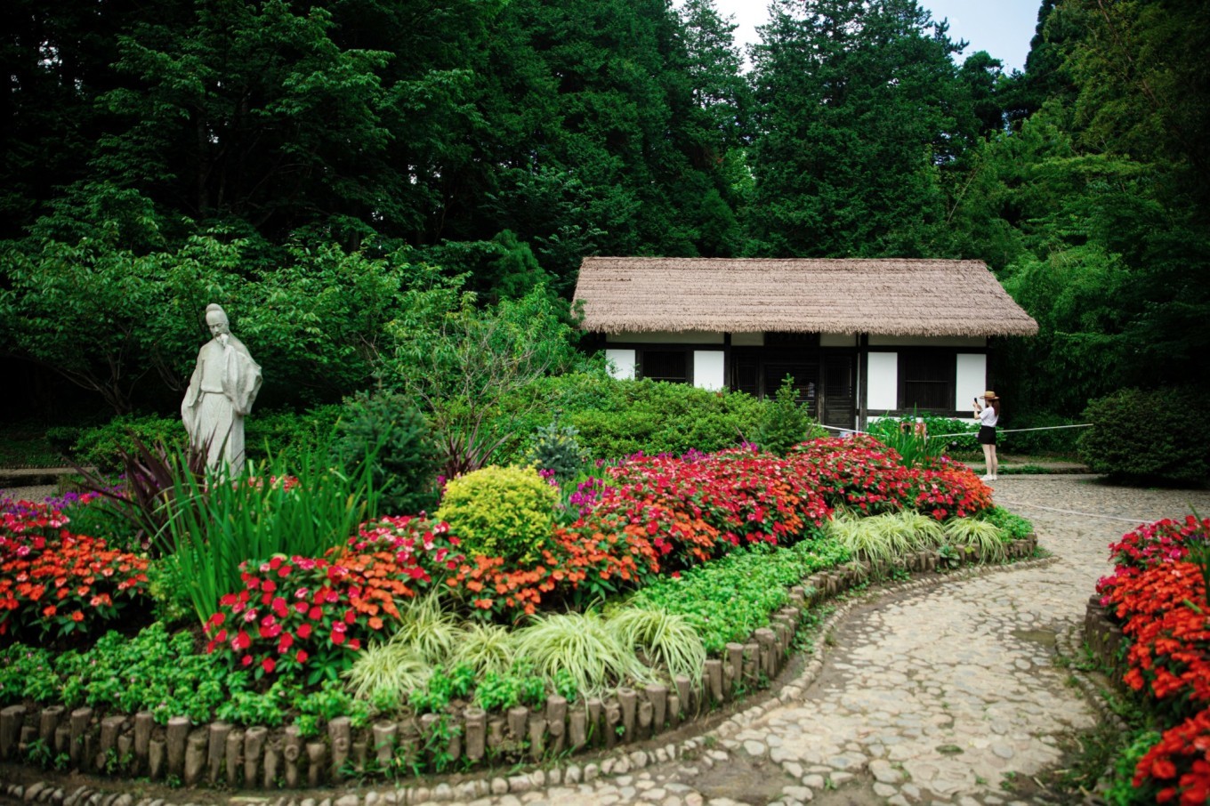 在草堂前坐下,再读读白居易的诗“人间四月芳菲尽,山寺桃花始盛开。长恨春归无觅处,不知转入此中来。”依旧感慨万千。