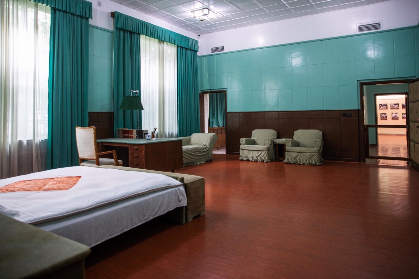 这里又被称为芦林一号别墅。其包括主楼和附房,单层平顶,是一栋具有民族风格、中西合璧的四合院,平面图像个“回”字。中央是露天内院,沿围回廊,四周的厅、堂、房间,相配有致。