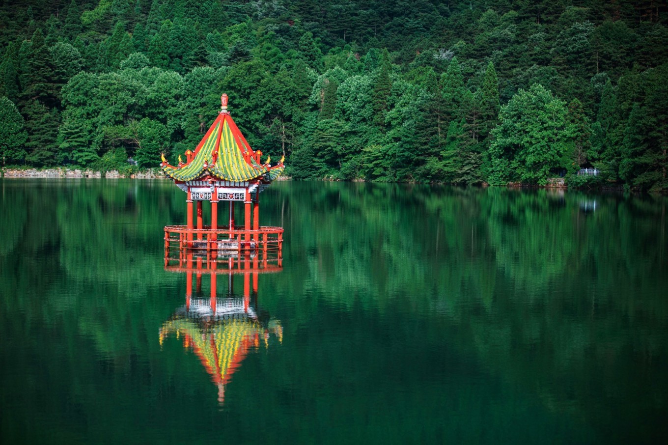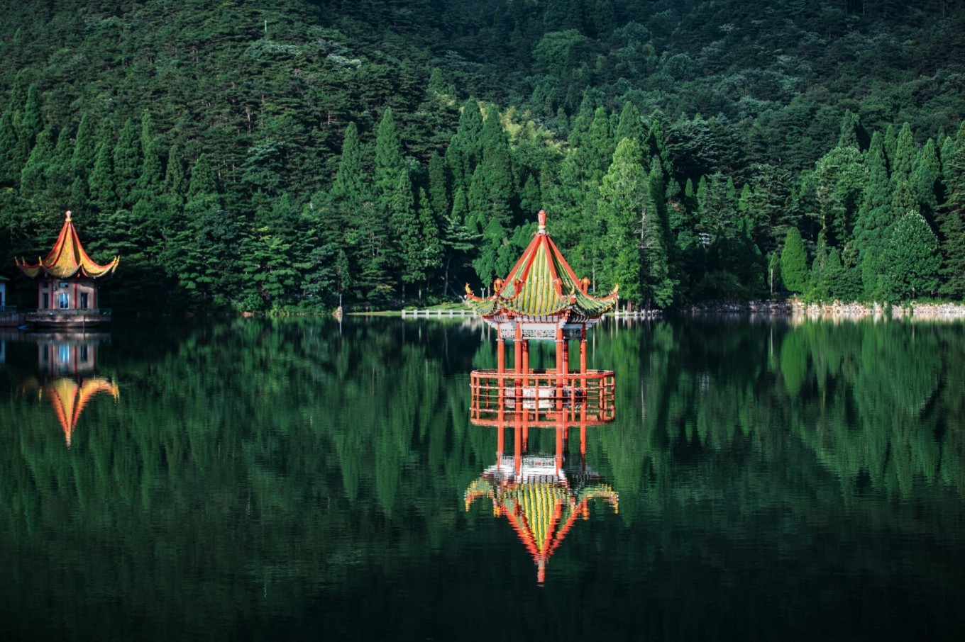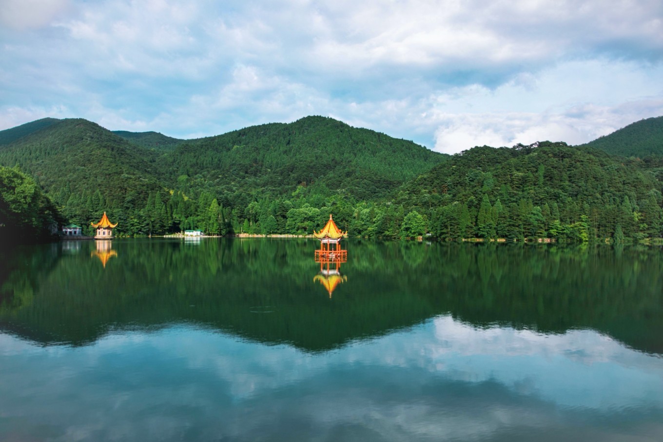 湖心岛内有许多人工饲养的孔雀,所以名为孔雀岛。夏日如琴湖如山水画一般,恬淡幽静,置身于秀丽的风景中,极目远眺远方朦胧的山峦,山风起处,绿影幻动,总有一种感动涌上心头。