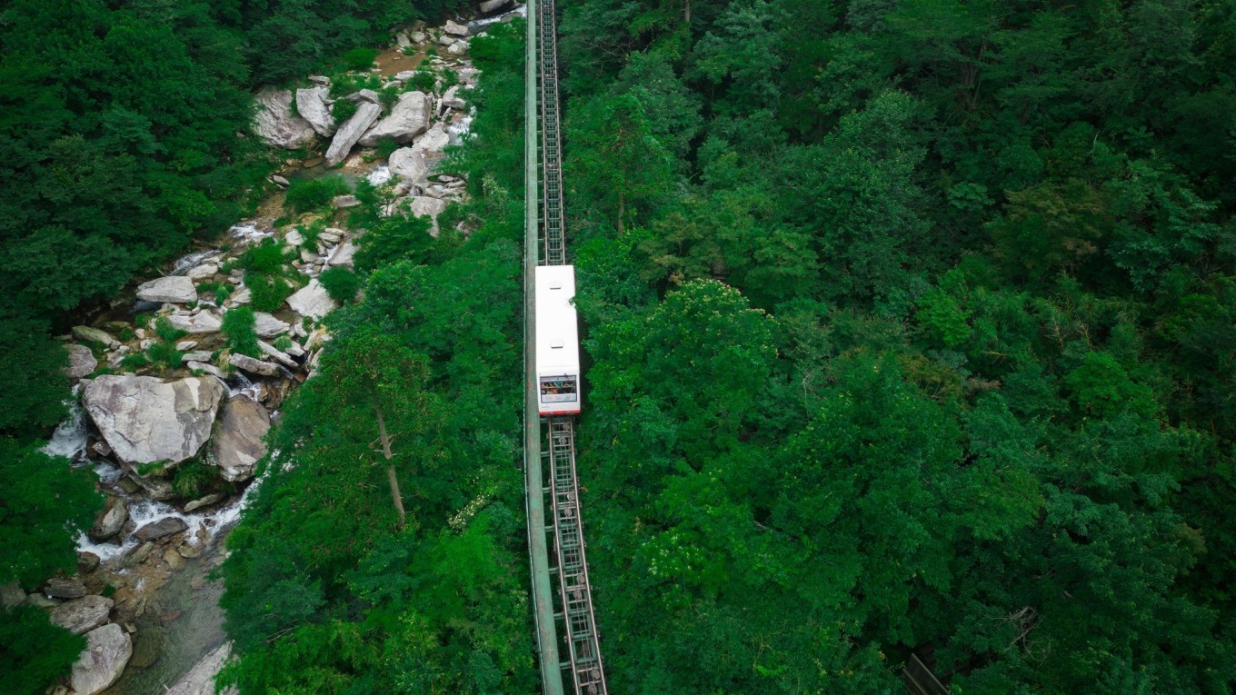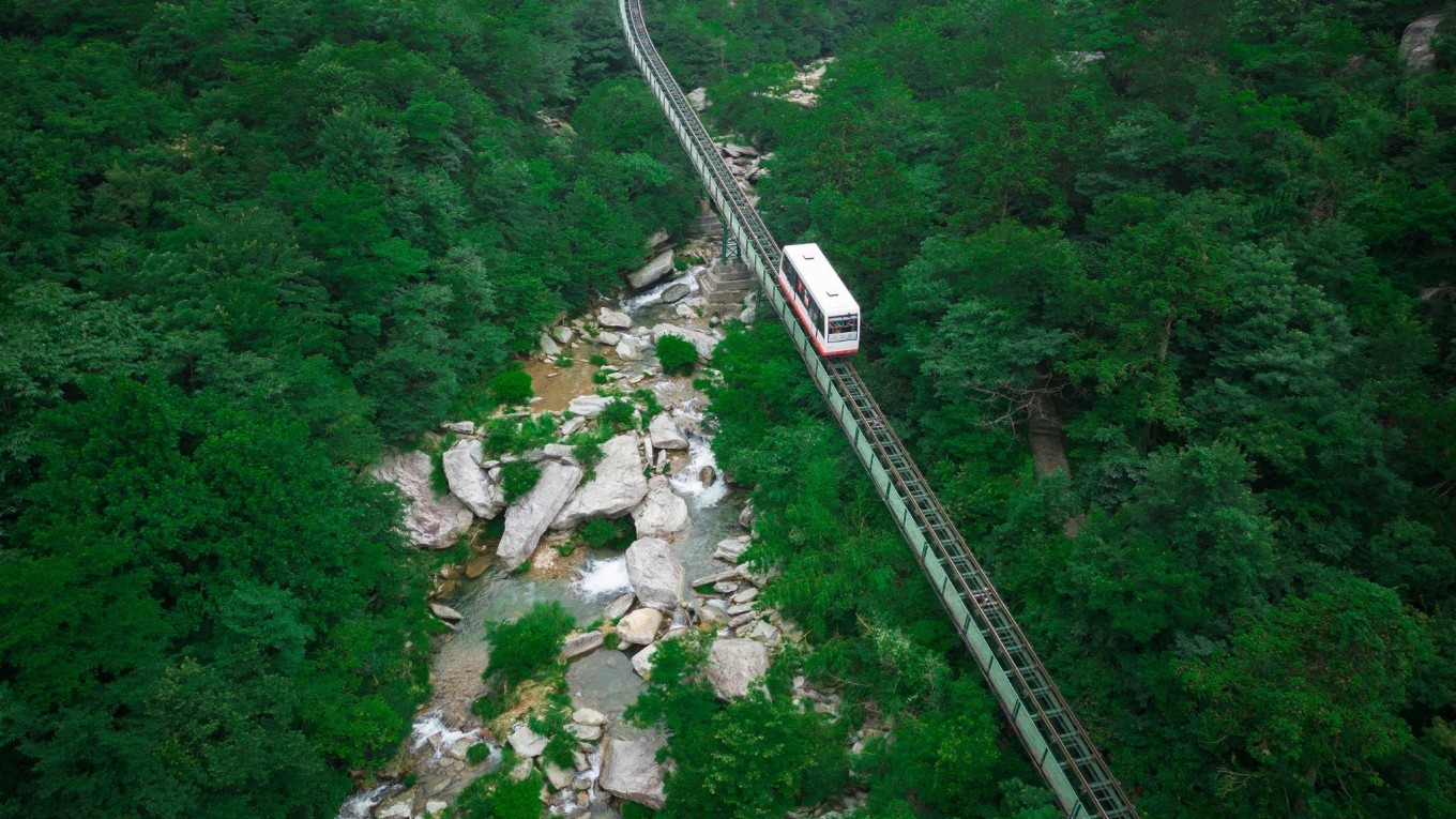 为让游客免去往返 3000 级台阶的辛苦,可以乘坐缆车穿梭于丛林间。小火车跨沟越溪,既可沿途观赏美景,又使原本艰难的步行变成了仅需 5 分钟的轻松之旅。