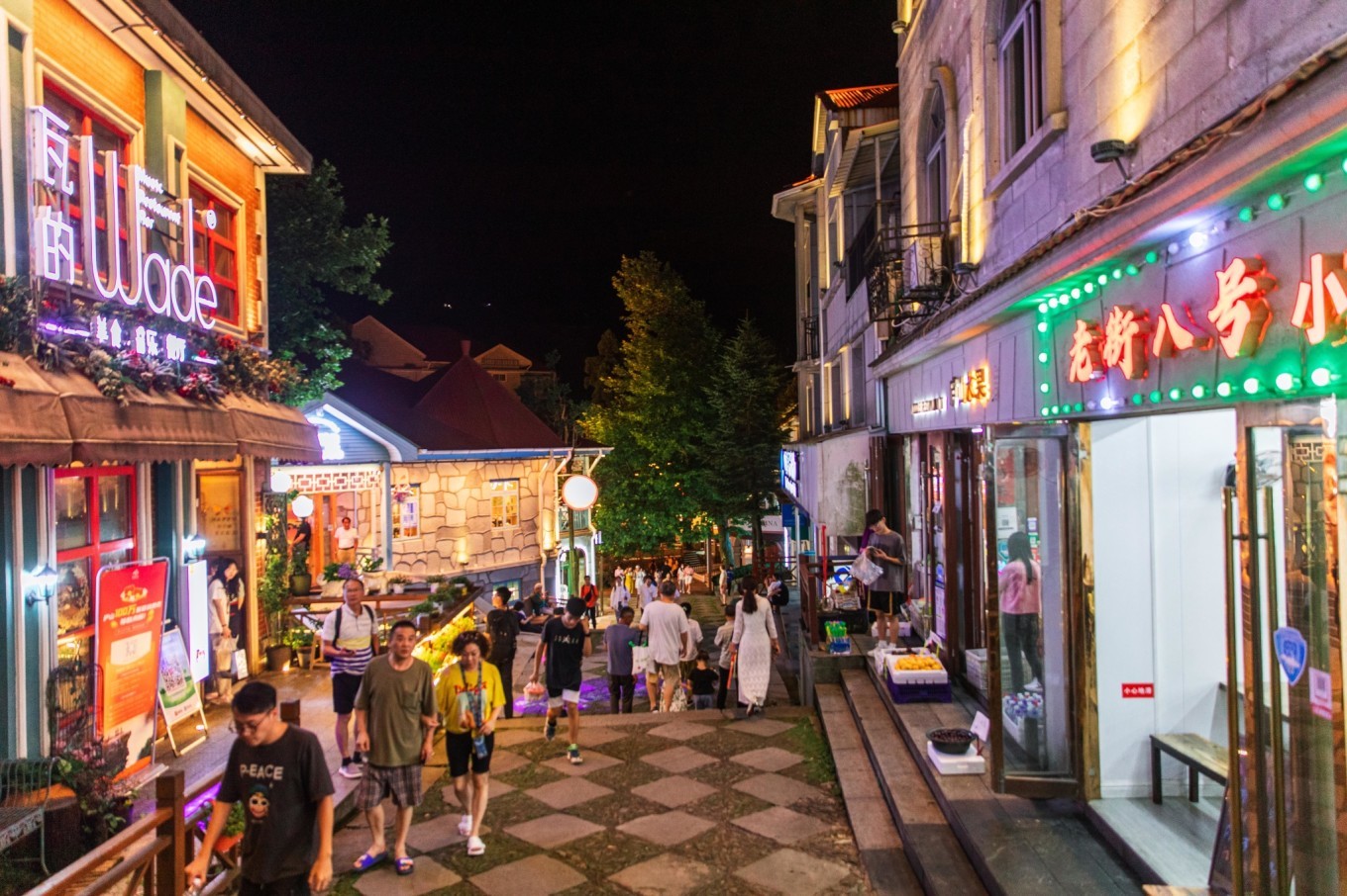 夜晚的牯岭街,是一天中最热闹的时候。晚风徐徐,霓虹灯一开,为山城的夜更添了一份色彩。街上售卖各种特色美食和当地特产,可以买些带回去当伴手礼。