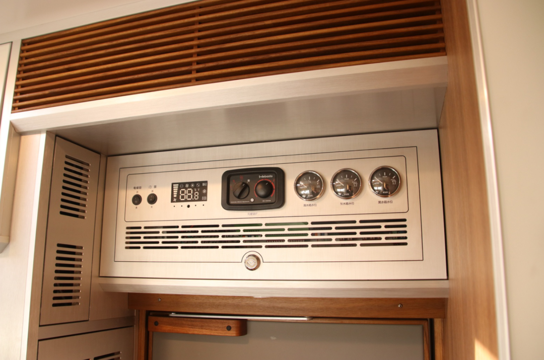 水路电路设备方面,一贯保持高水准。穿越者S标配带清洗口的400L食品级PE清水箱,为了确保饮用水的安全,加装了荷兰品牌的清水箱双向紫外线杀菌过滤系统,呵护出行饮食健康。此外100L PE灰水箱和120L PE黑水箱还配备了带有液位显示器及电动/手动排污阀的,相当人性化。