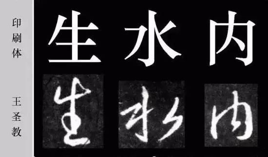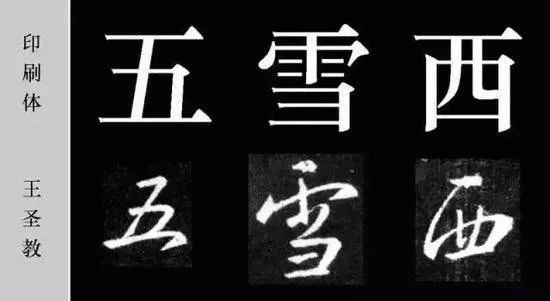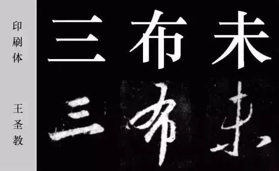 在宋体印刷字里,诸横方向一致,关系平行;而《圣教序》中很少平行,方向讲究变化。举例如下: