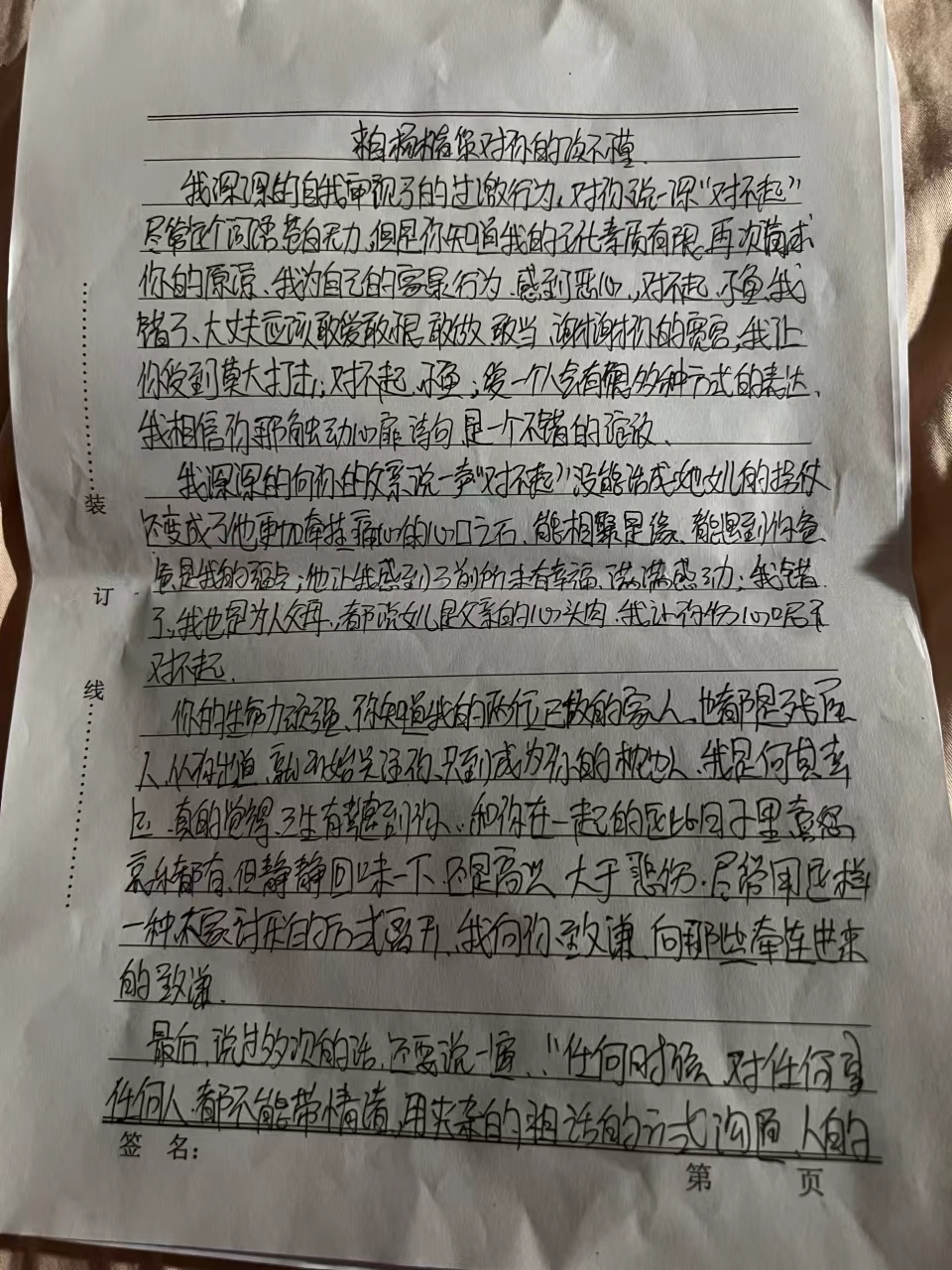 杨槠策在信的最后又写道:“说过多次的话,还要说一遍,任何时候对任何人都不能带情绪,用夹杂粗话的方式沟通。一生很苦短,不能伤害自己又不能伤害别人,一句话让人笑,一句话让人跳,为什么我们不能说让别人高兴的话呢……我俩痛定思痛,都要静下反思,要收口、收心、收性……说是致歉信,但还是说了很多废话,希望你看了之后不要和文字生气,你真的很棒……”