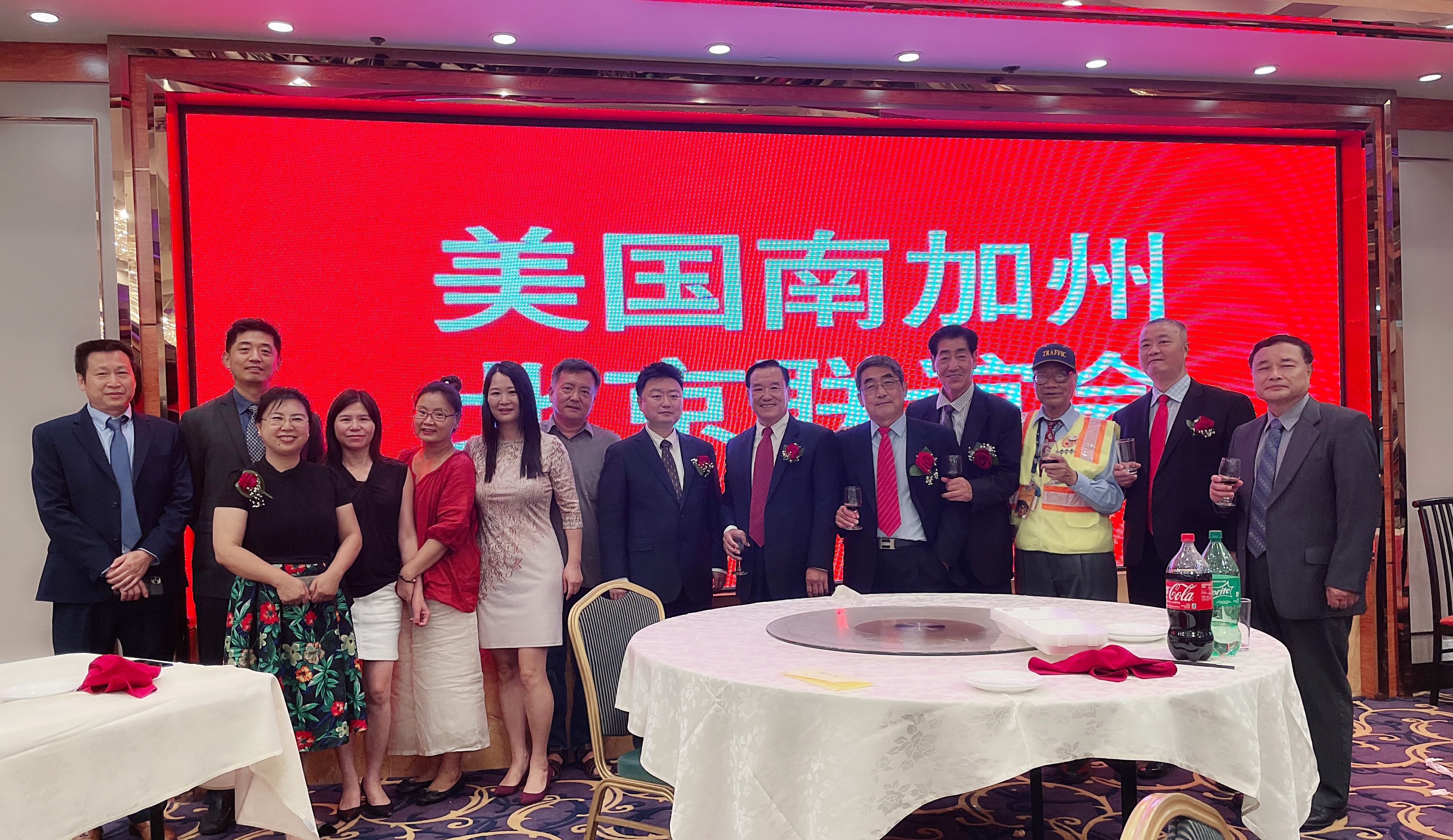 北奥夫妇带着我3点之前来到柔似蜜888海鲜大酒楼,谁知申玉明夫妇、肖敏副会长、孙晓红财务长已在给58张餐桌摆放葡萄酒、可乐、汽水、绿植、节目单、宣传册和桌签。我奉命穿上醒目反光背心,引导主要嘉宾的车辆停放在预留车位上,例如中国驻洛杉矶总领事馆、美国国会议员、重要侨领、主要赞助商等。与此同时,配合北奥会长在进大厅醒目处,悬挂就职典礼墙面签名幕布,在门口大树上横挂“美国南加州北京联谊会”大型条幅,给每张桌子分发节目单,然后,向财务长缴纳理事用餐费。我遇见美国江西联谊会会长邓桂凤,她上周在玫瑰岗华园为挚爱的美国夫君举办追思会,只在好友圈发了消息,没想到很多好友来悼念,使她感动不已!才华横溢的邓大姐填了一首词,热烈庆贺美国北京联谊会换届圆满成功!《卜算子,賀》:“本是江西人,邀为座上客。喜庆北京联谊会,换届就职悦!京都享天下,人才论辈出。今日北奥承武出,玉明相扶佐。高朋聚,共庆贺,路迢迢,重担托!祝愿北联会昌盛,大步朝前阔!”