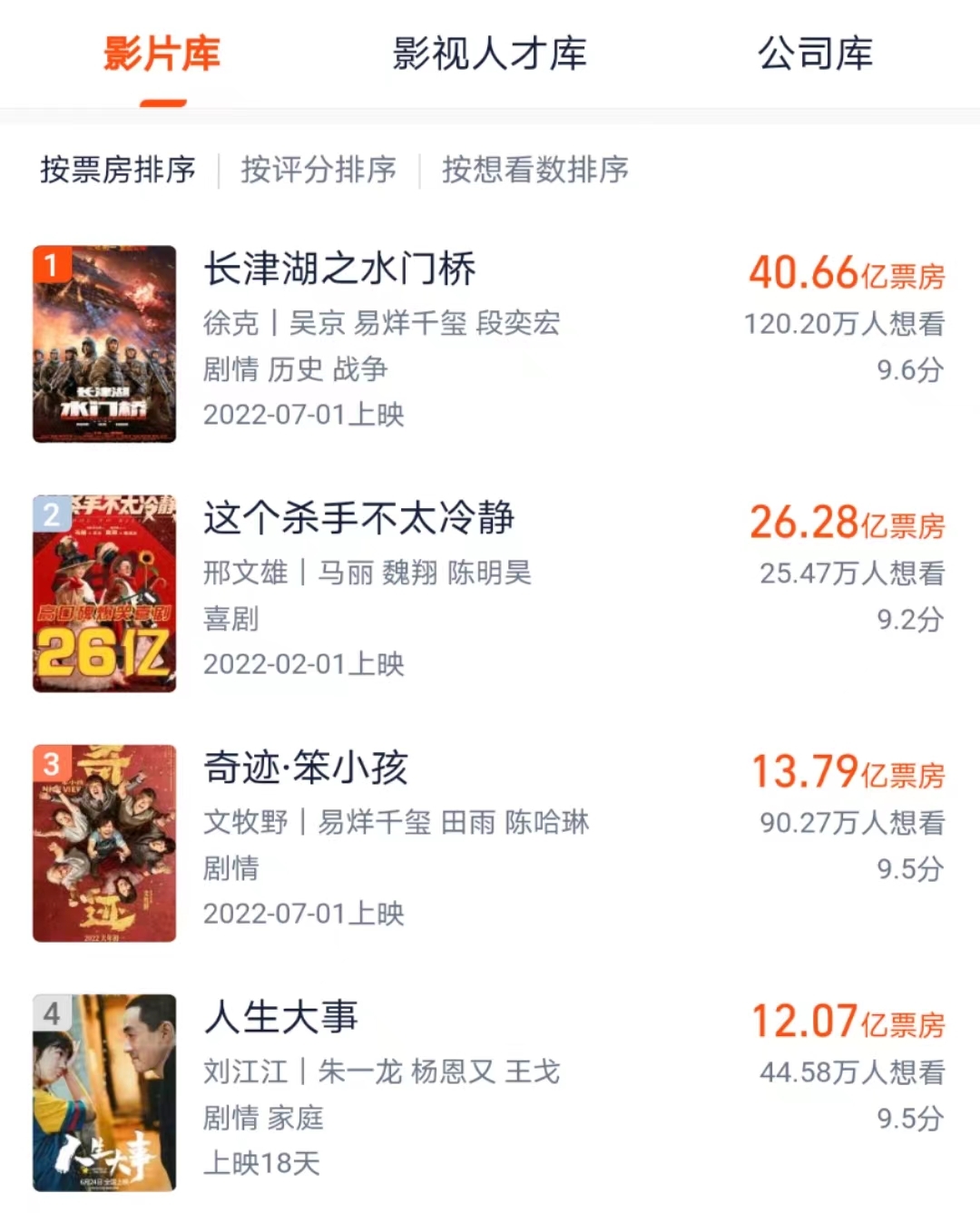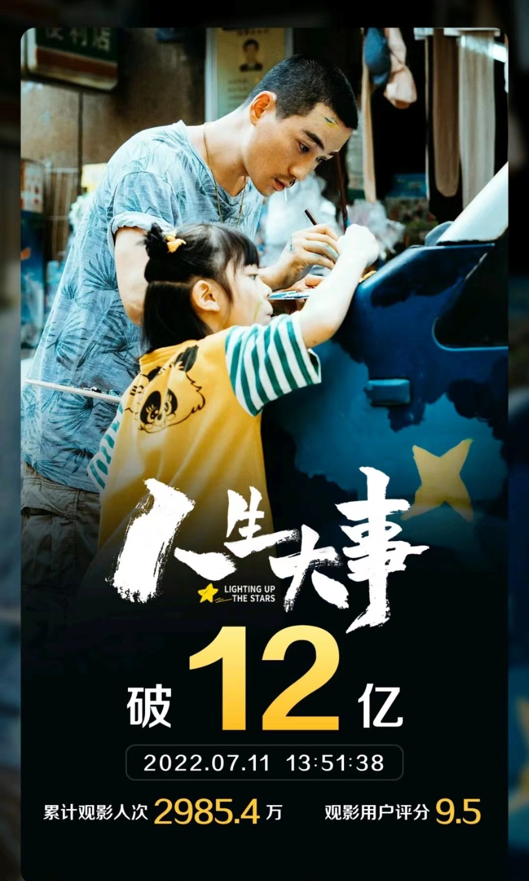 《人生大事》不仅是华语圈中第96部票房过10亿的电影,而且还是2022年电影票房总榜的第四名,仅排在吴京、易烊千玺的《水门桥》和马丽的《这个杀手不太冷静》以及易烊千玺《奇迹笨小孩》这三部电影之后,真是可喜可贺呀!