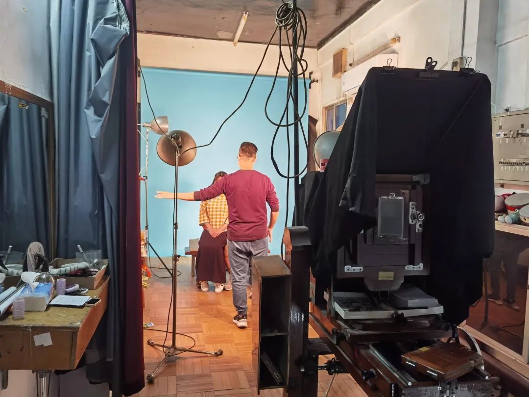 唯一让人感到些许生气的是拍摄处,有一个中年老师傅站在老式手摇相机前调试灯光。