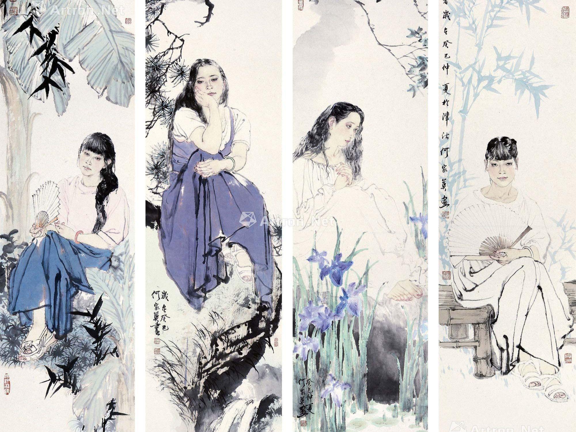 拍品名称:何家英 2013年作 清暑四美图