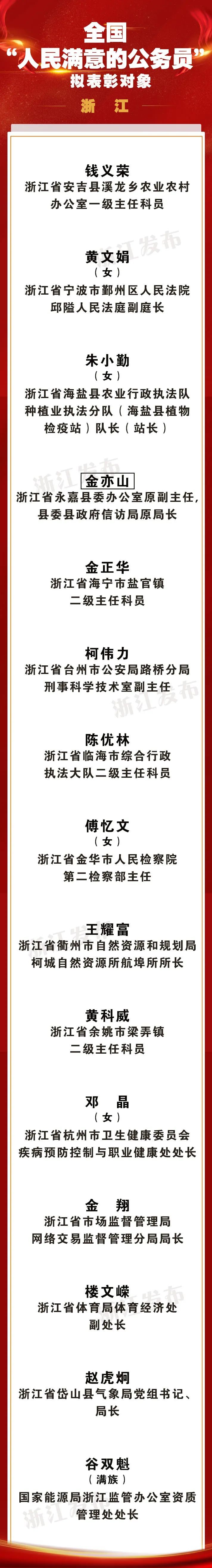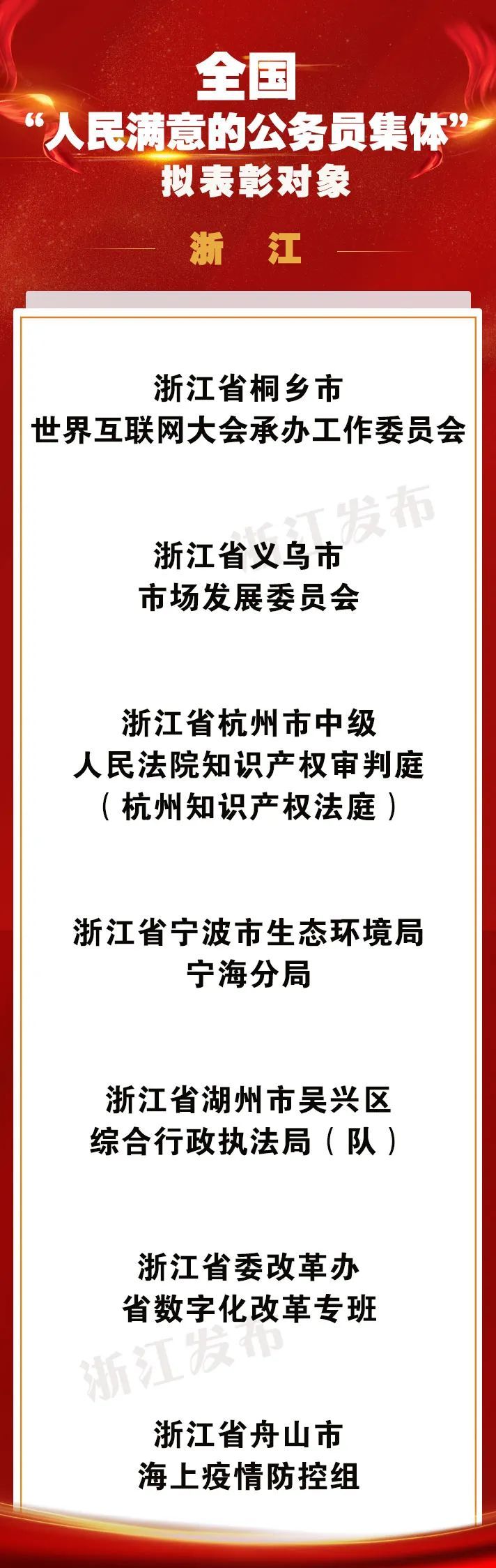7月11日,全国“人民满意的公务员”和“人民满意的公务员集体”拟表彰对象公示,其中,浙江共有15名个人和7个集体入选,有你认识的吗?