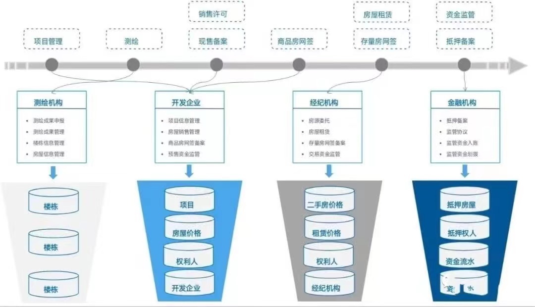 智慧平台建设以楼盘表为基础,以“房屋全生命周期”作为交易业务主线,采用互联网+、大数据、人工智能等高新技术,实现从房地产开发、房屋交易、交易资金监管到资金划拨注销账户的闭环管理,有效防控房地产市场各类风险。该平台从测绘、商品房交易、存量房交易、房屋租赁等交易类业务方面,以及商品房预售资金监管、存量房资金监管等资金类业务方面,全面打造功能齐备、智能协同的一体化系统平台,彻底解决了传统信息系统繁复、数据壁垒等各项历史问题。