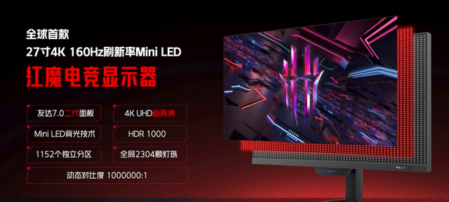 今天,红魔发布了首款 27 英寸 4K 160Hz mini LED 显示器“红魔电竞显示器”。