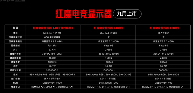 这款显示器将在 9 月份上市,价格暂未公布,有 4K 普通版、4K 无线投屏版,还有一款 2K 240Hz 版本,非 mini LED 背光。