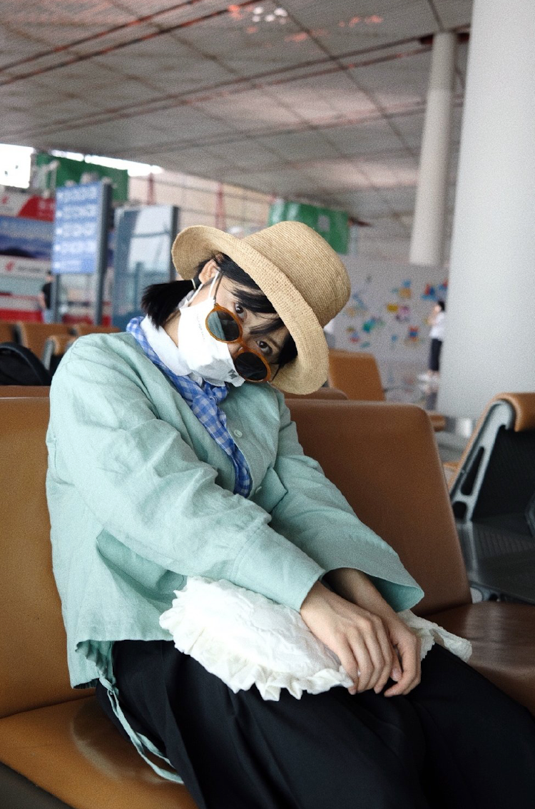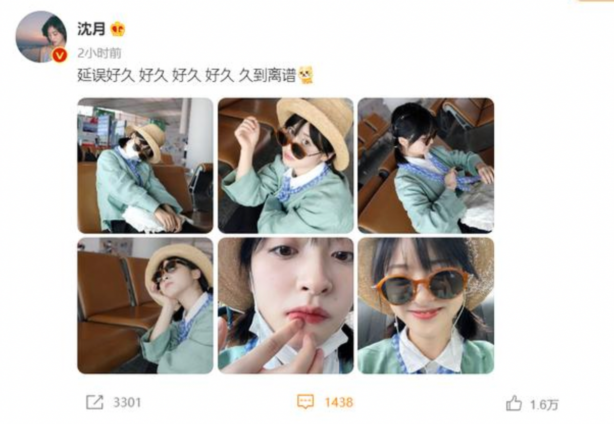 照片中沈月穿着绿色的衬衫长袖,下半身穿着黑色长裙,头上戴着一个圆顶草帽,看起来像是刚度假回来,这一身穿搭非常青春活力。但是不知道是版型的原因还是穿太多了,沈月看起来有点臃肿,但依旧没有影响沈月的颜值。