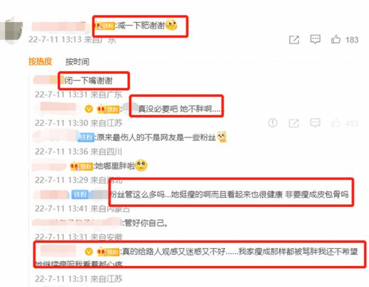 近日,演员沈月在社交平台上晒出一组照片,照片中沈月穿着长袖长裙,看起来有点臃肿,随后有粉丝在下面评论道 “减一下肥,谢谢”,然后粉丝开始就“减不减肥”在评论区展开了争论。