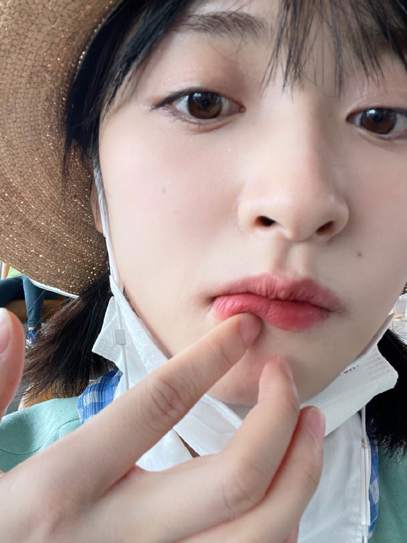 这张照片中沈月怼脸出镜,脸上化着非常清淡的妆容,从脸上的纹路可以看出是原相机出镜,敢用原相机怼脸拍的女星估计也没有几个人。不过这么近使沈月的颜值更加直观感受到了,大大的眼睛,完美的鼻形,嘴唇嫣红,看起来非常可爱。