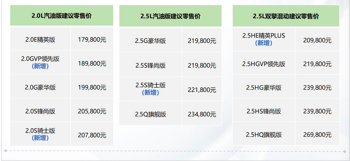 2.5HE双擎精英PLUS版本的到来,也让凯美瑞双擎版本的价格进一步下探,让更多消费者可以享受到实惠,双擎混动价格门槛,首次降到了21万元内,20.98万元的售价,甚至比2.5燃油版21.98万元的起售价还要低。考虑到近期购置税优惠等一系列政策,消费者能花更少的钱,买到这套成熟可靠、好开又省油的混动。