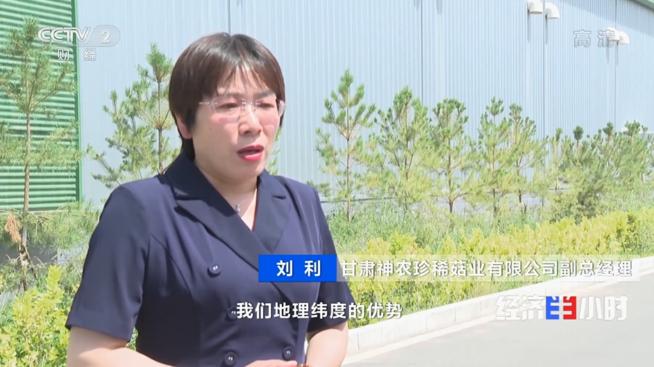 甘肃神农珍稀菇业有限公司副总经理 刘利:“张掖的自然环境条件也是非常的有特色,我们地理纬度的优势以及我们常年的温度,也比较适合工厂化食用菌的种植。”
