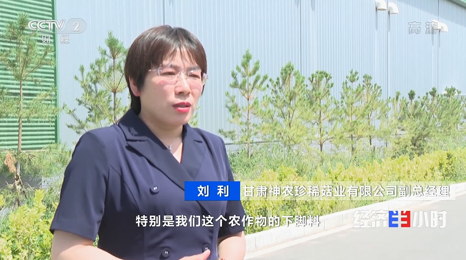 甘肃神农珍稀菇业有限公司副总经理 刘利:“那么我们为什么会选择来到张掖这个地方呢?因为有非常大的原材料的资源优势,特别是我们这个农作物的下脚料,比如说我们的玉米芯、玉米秸秆这样的农作物的下脚料,是我们作为食用菌生产的一个最主要的原材料,这个资源优势给了企业在成本上面,就是给了很大的支撑。”