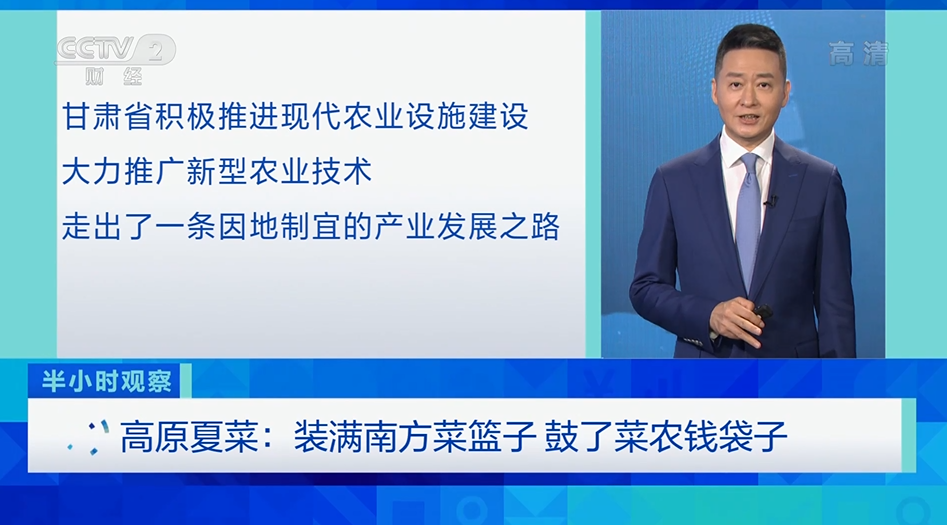 7月11日,由张掖市融媒体中心协助央视财经频道《经济半小时》栏目拍摄的《高原夏菜种出好“钱”景》播出,报道了张掖市大力发展高原夏菜产业,通过推广新型农业技术、发展高效设施农业、开展蔬菜出口贸易,走出了一条因地制宜的产业发展之路,高原夏菜成为当地农民增收致富的金钥匙。