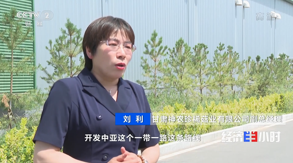 甘肃神农珍稀菇业有限公司副总经理 刘利:“我们的产品目前也有通过供港澳蔬菜的渠道,进入到我们港澳的一些市场,以及东南亚的一些市场,那下一步我们希望自己通过开发中亚这个一带一路这条路线,自己再做一部分产品的出口。”