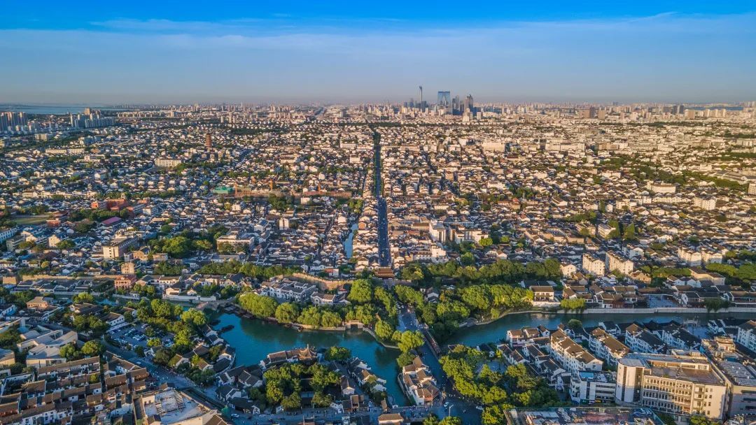 航拍苏州古城。