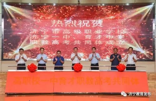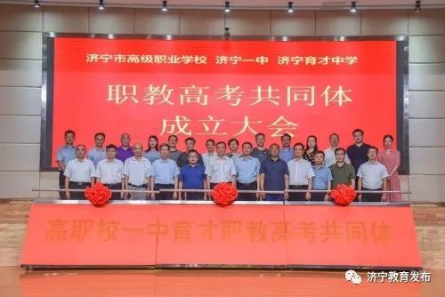 “职教高考共同体”是由高职校、济宁一中和济宁育才中学共同发起,汇集了济宁市高中段优质教育资源,职普融合、强强联合,打造了一个全新的教育平台,将为学生提供更多更好的升学渠道。共同体包括职教高考研究院、高职校附属职教高考学校、济宁一中、济宁育才中学和更多普通高中举办的职教高考班,通过互派师资,让普通高中最好的语数外教师走进职业学校,让职业学校最好的专业课教师走进普通高中,促进中职与普高优势互补、合作共赢,搭建更优的平台,用最好的培养机制,满足人民群众对优质教育的需求,开辟了济宁教育创新发展的新路径。