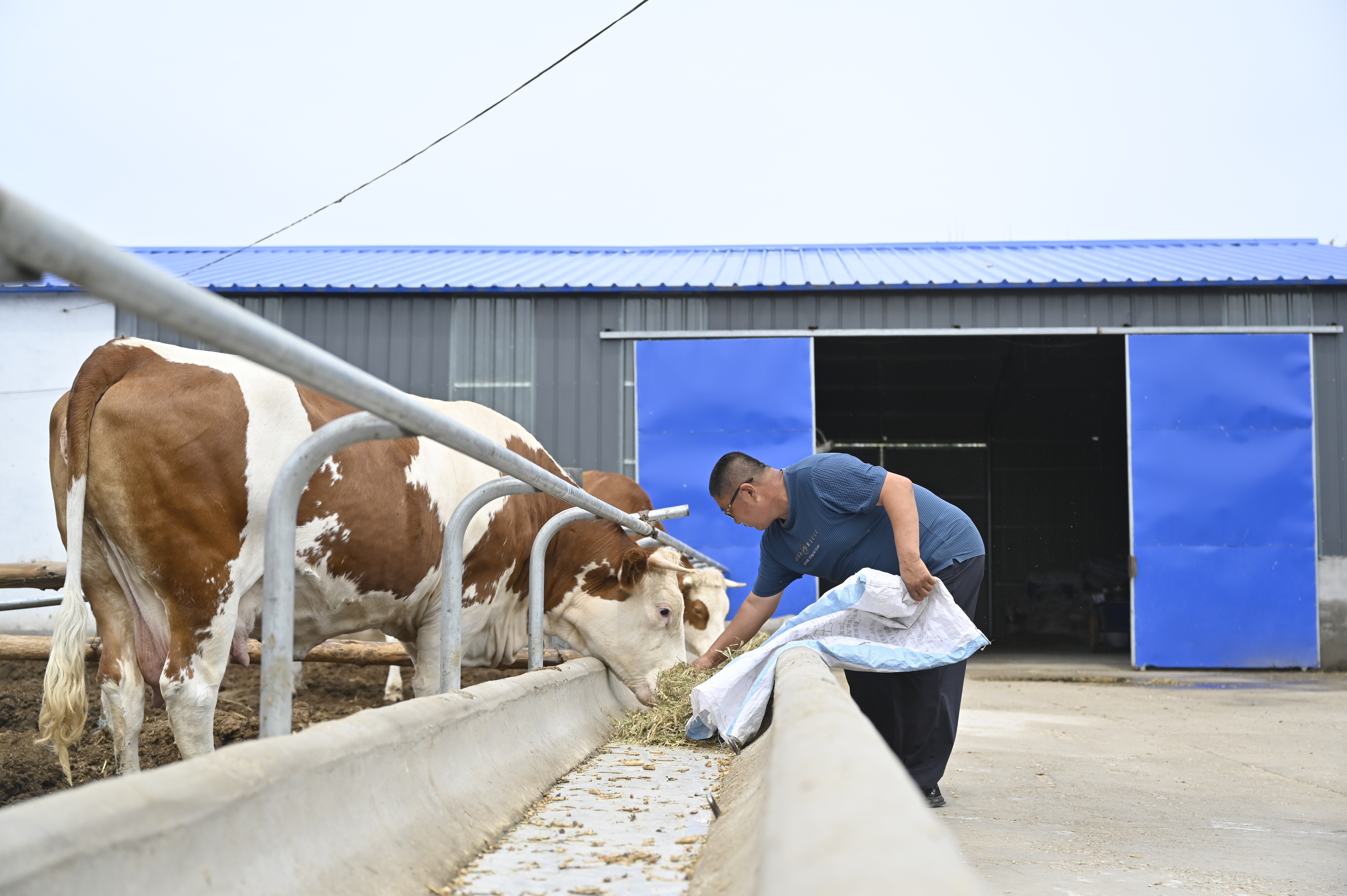 敖门代来正在给牛喂食。新华社记者贺书琛摄