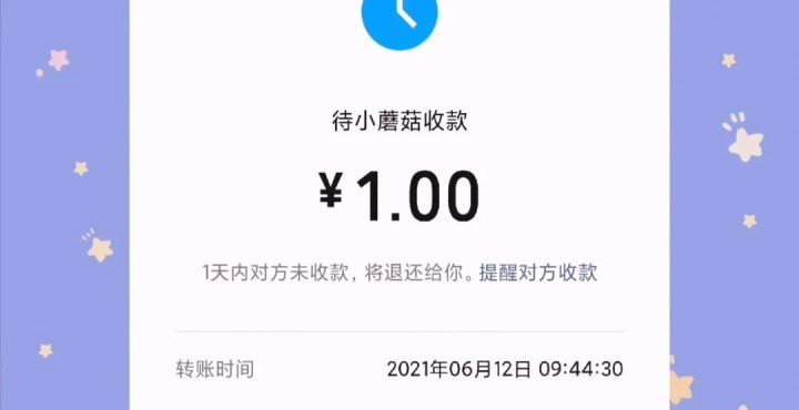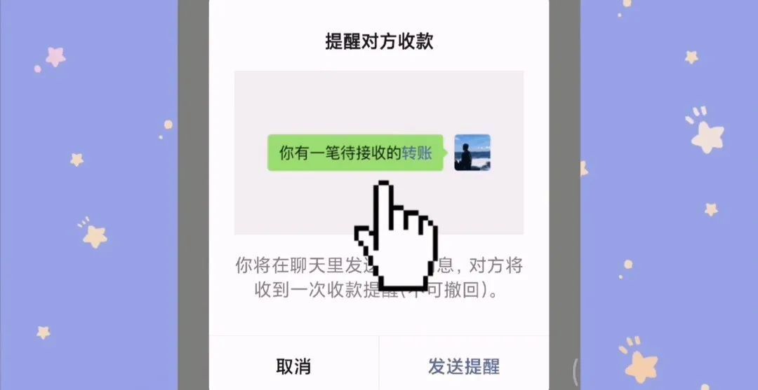 对方就会收到一条提示,你有一笔待接收的转账。