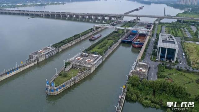 从长沙新港顺江而下,不到11公里的蔡家洲上,是湘江长沙综合枢纽。它担负着保障长株潭城市群生产生活用水,雨季防洪,旱季保水,配合长沙市滨水景观带建设,兼顾发电等功能,更为重要的作用则是从根本上改善了长沙至株洲段湘江航道的通航条件。